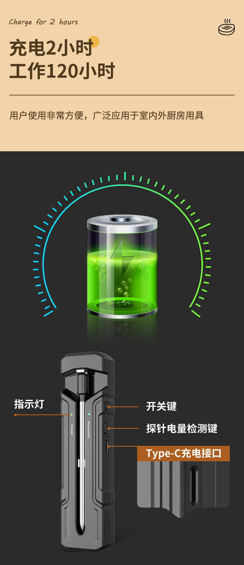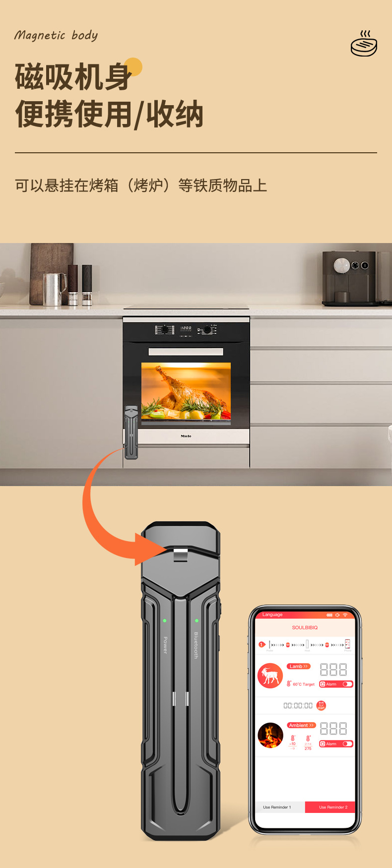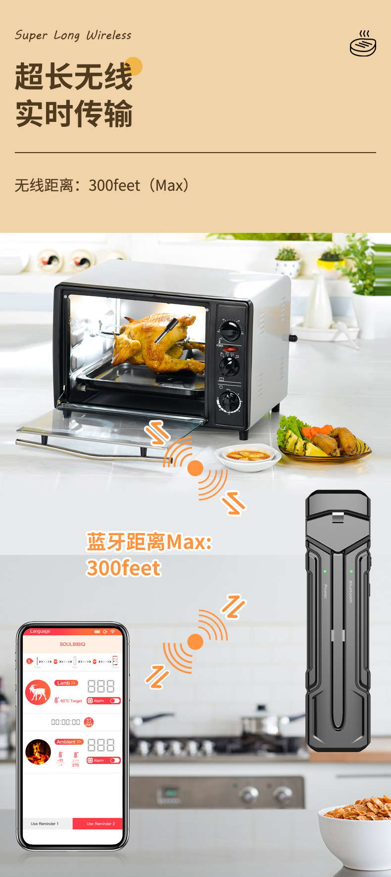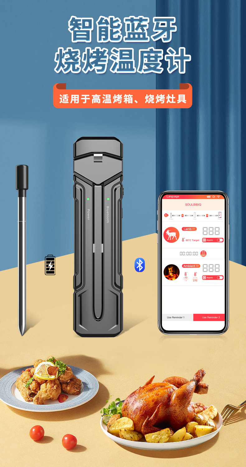 2024 무선 바베큐 온도계 블루투스 온도계 주방 요리 바베큐 온도계 음식 온도계