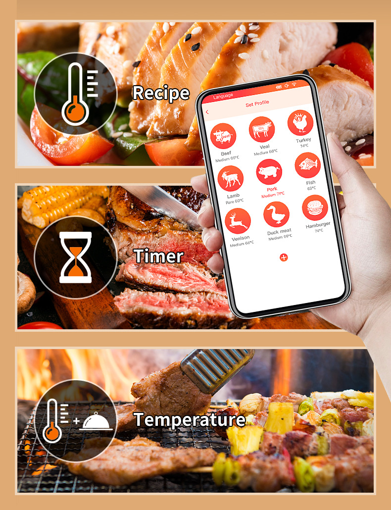 2024 무선 바베큐 온도계 블루투스 온도계 주방 요리 바베큐 온도계 음식 온도계스토어 가기