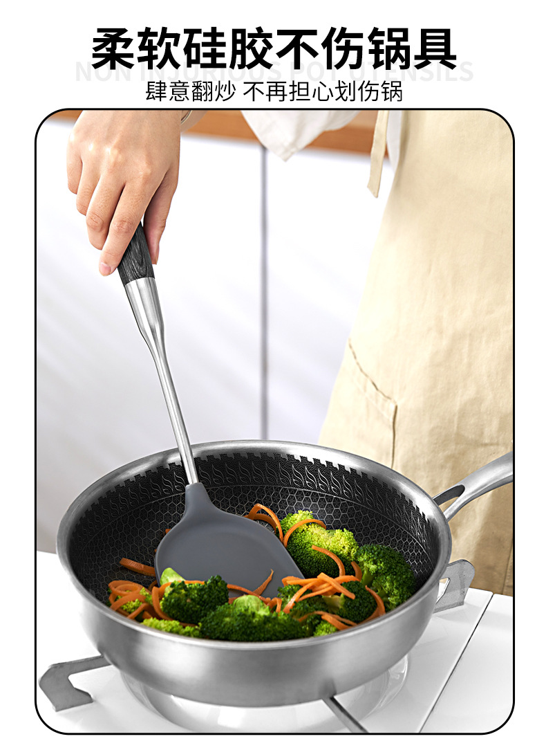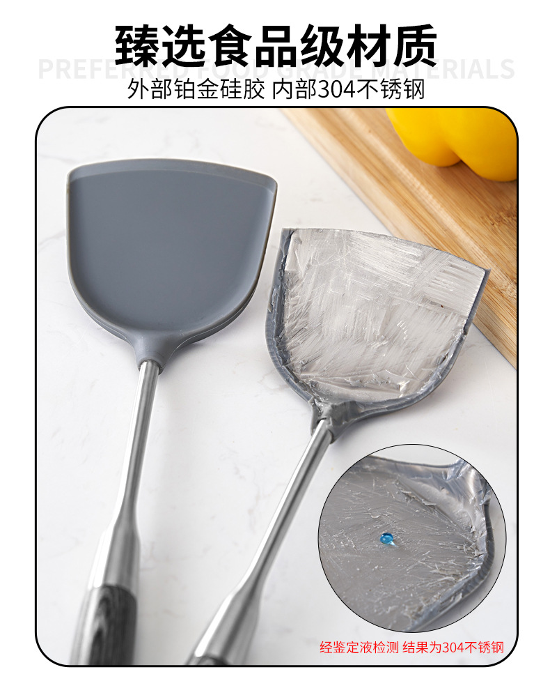 실리콘 주걱 304 스테인리스 가정용 볶음 주걱 논스틱 팬 특수 주방 용품 세트 고온 내성 접시 주걱