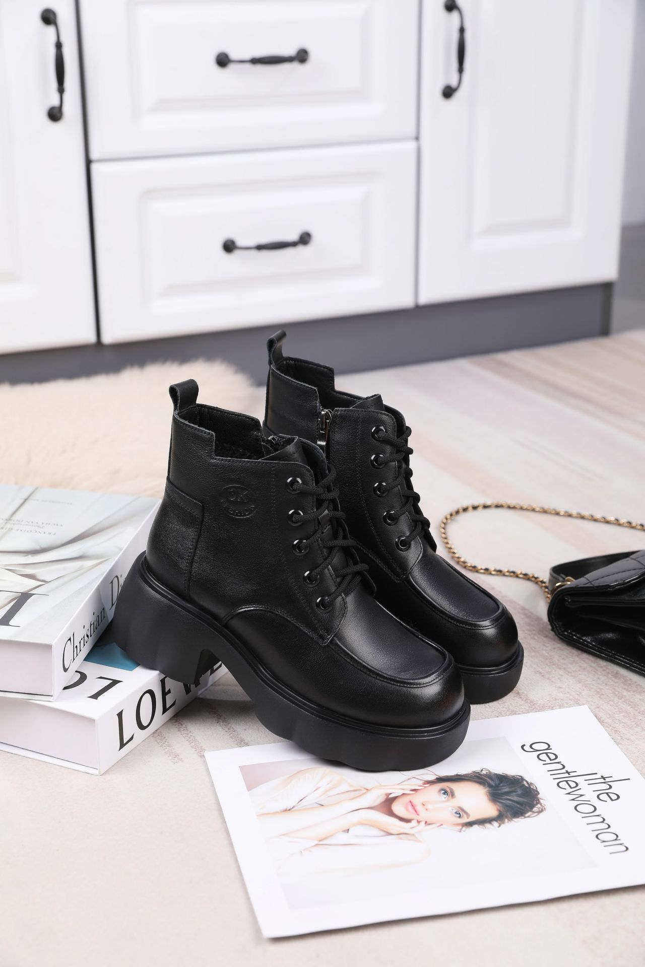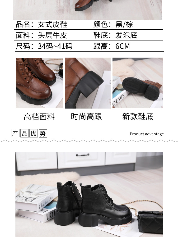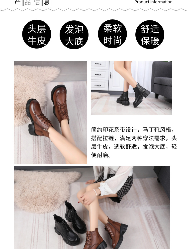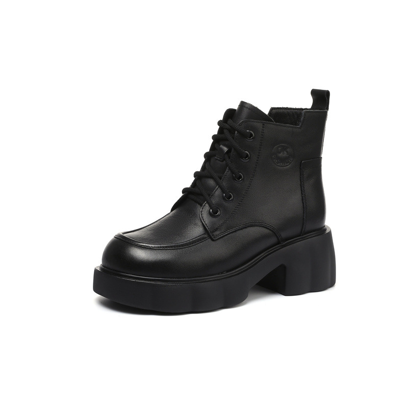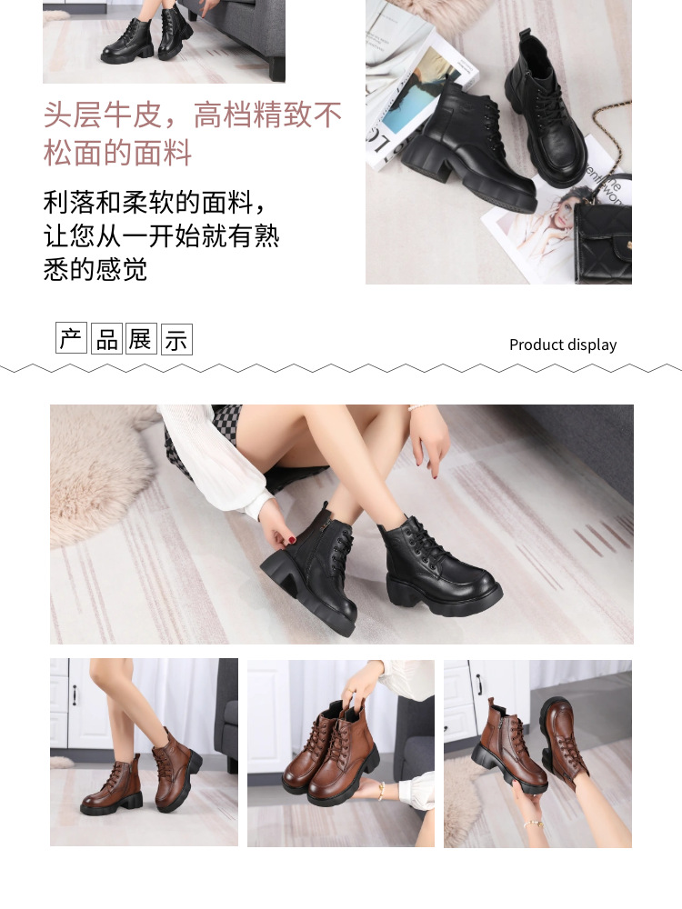 여성용 새 가죽 23 가을과 겨울 두꺼운 마틴 부츠 두꺼운 밑창 부츠 소가죽 하이힐 내셔널 윈드 슈즈의 탑 레이어