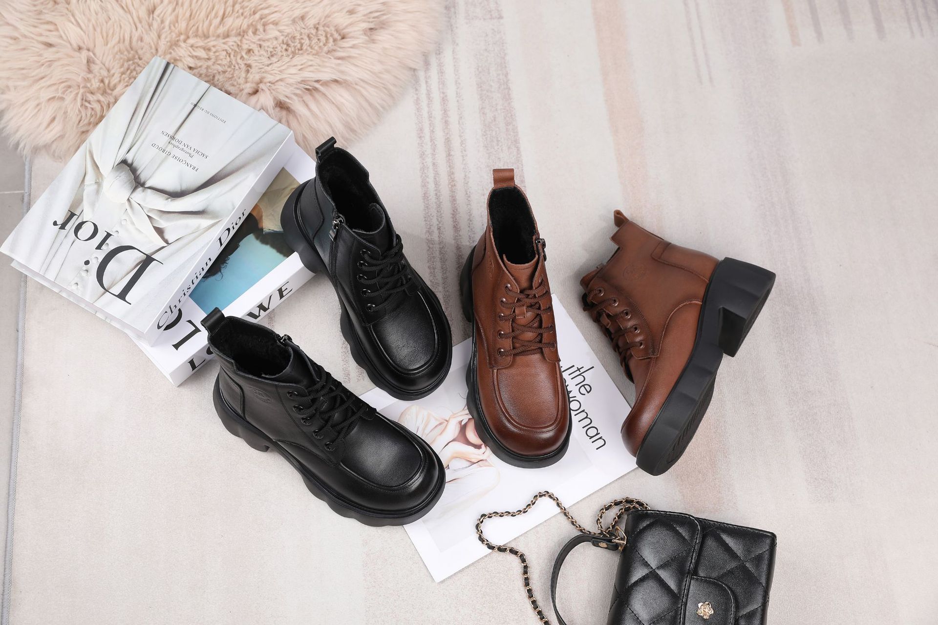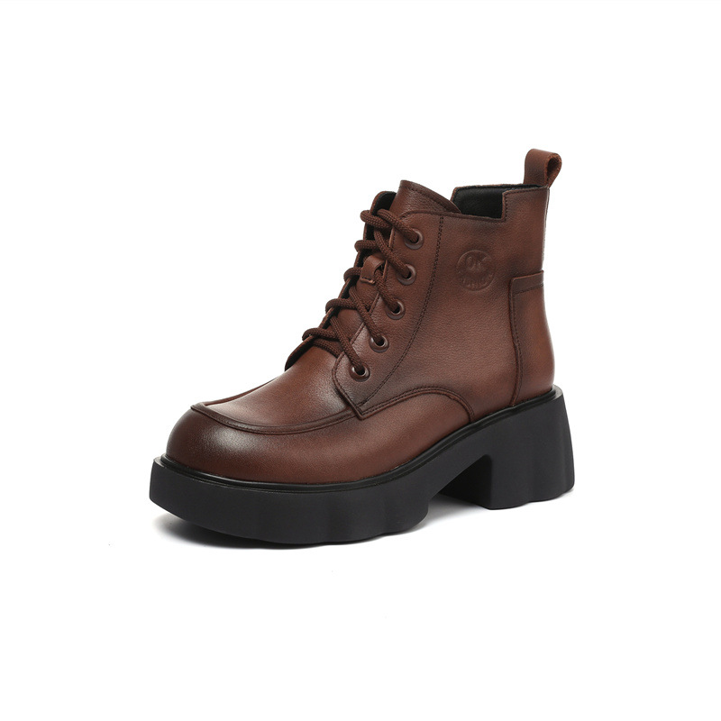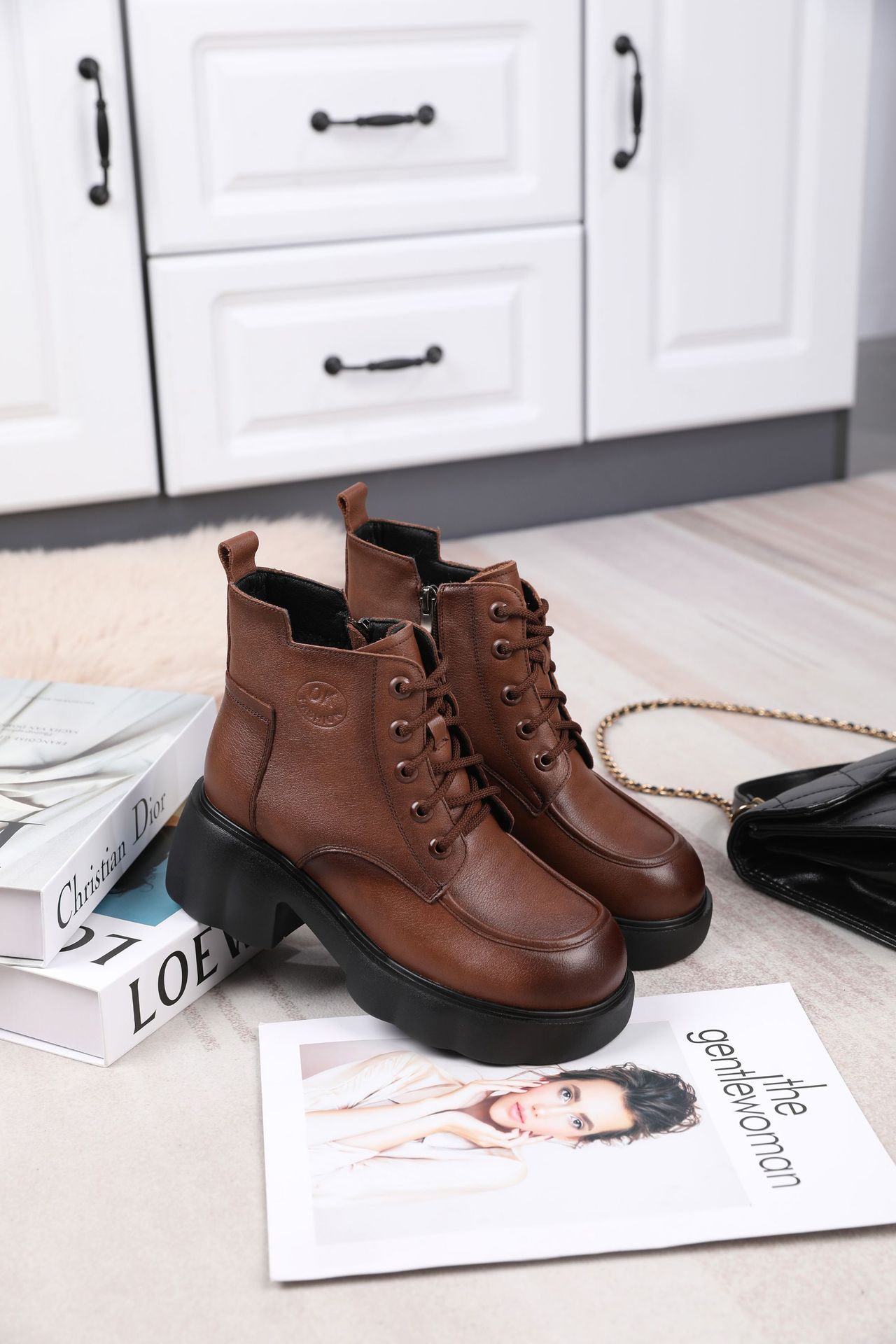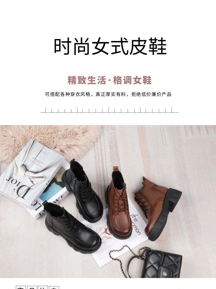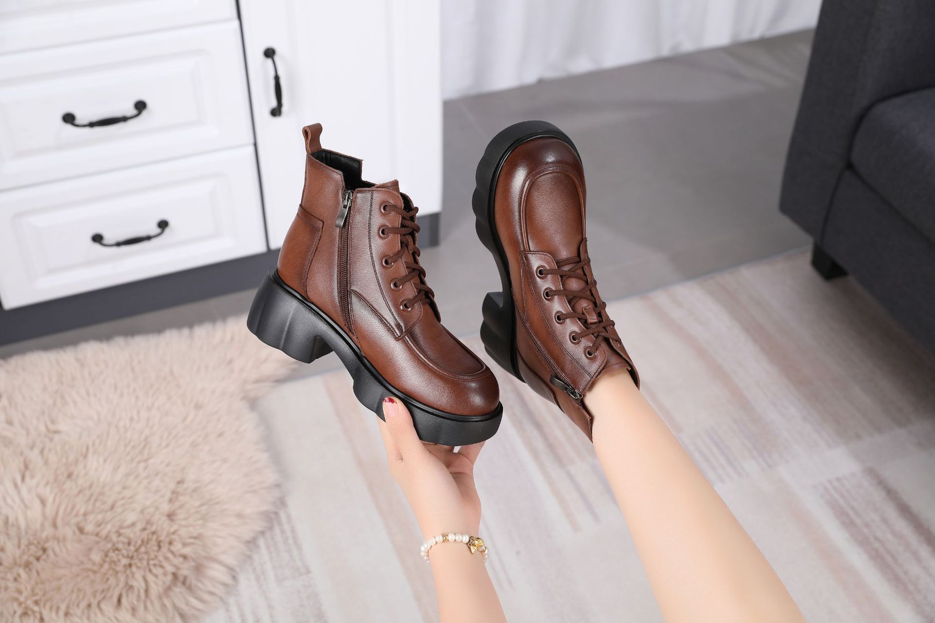 여성용 새 가죽 23 가을과 겨울 두꺼운 마틴 부츠 두꺼운 밑창 부츠 소가죽 하이힐 내셔널 윈드 슈즈의 탑 레이어스토어 가기