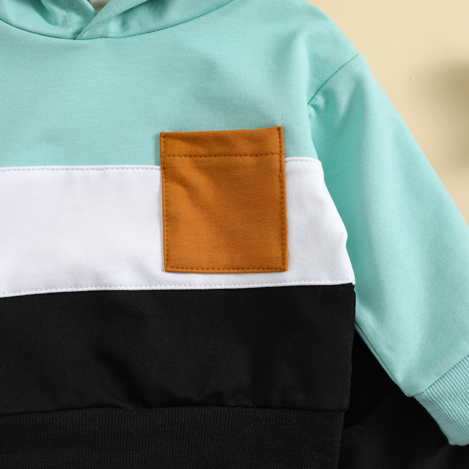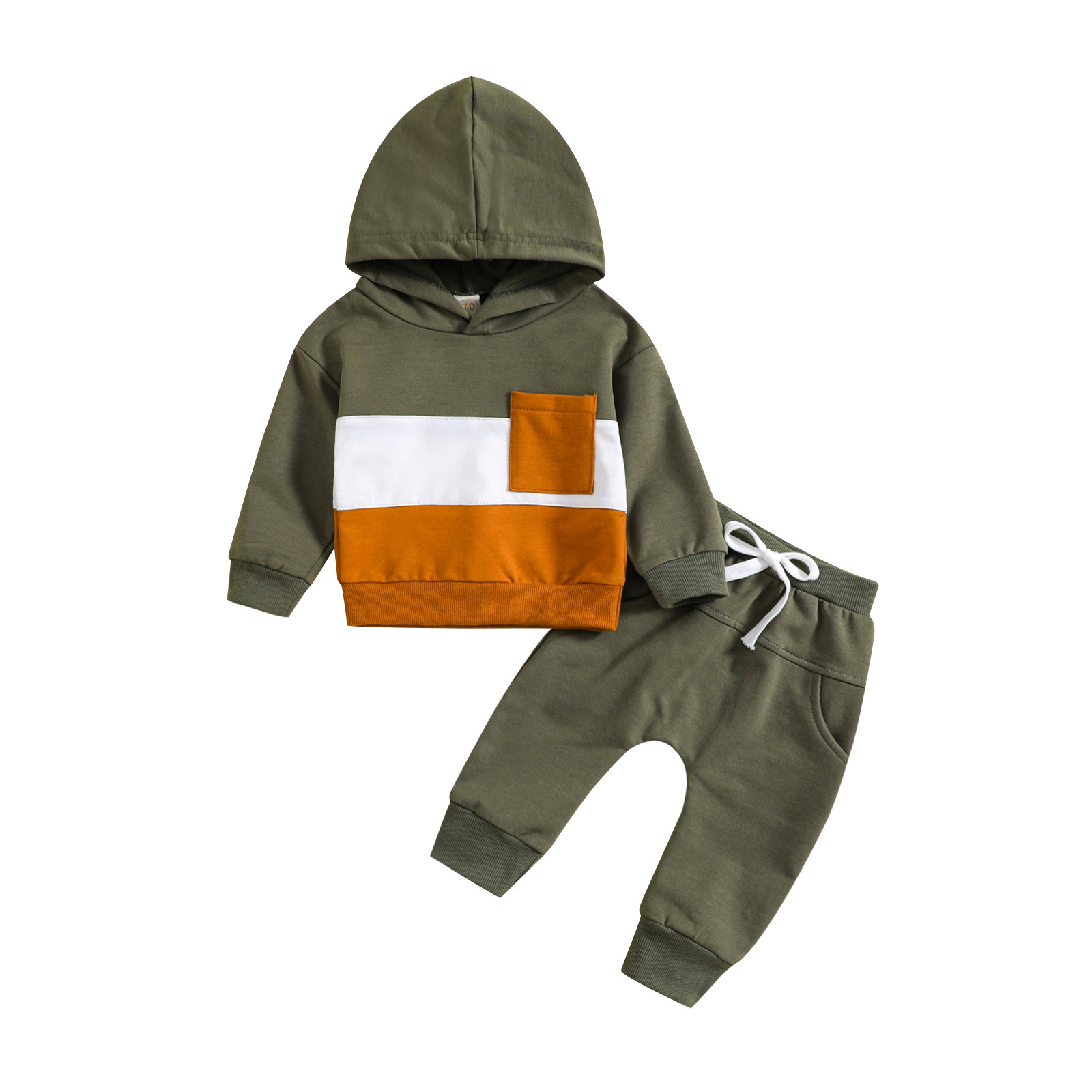 크로스 보더 아동복 새로운 베이비 컬러 일치하는 가을과 겨울 후드 캐주얼 스웨터 세트 남성과 여성의 어린이 겉옷 긴 소매 바지스토어 가기