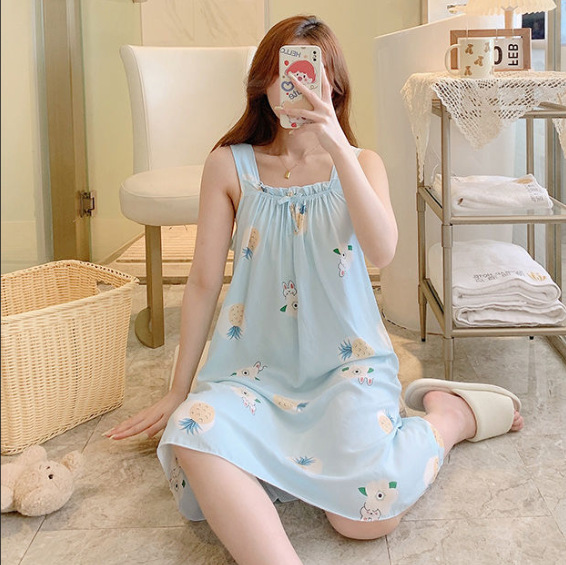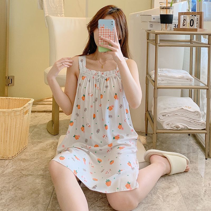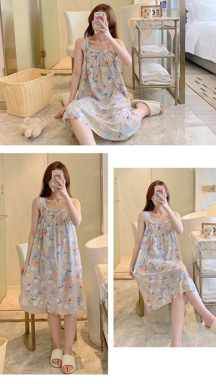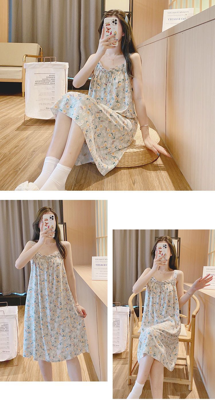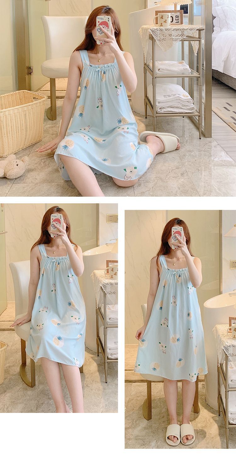 새로운 스타일 잠옷 여름 슬링 잠옷 순면 여자의 가정 옷 인쇄 달콤한 공주 귀여운 플러스 사이즈 면 실크스토어 가기