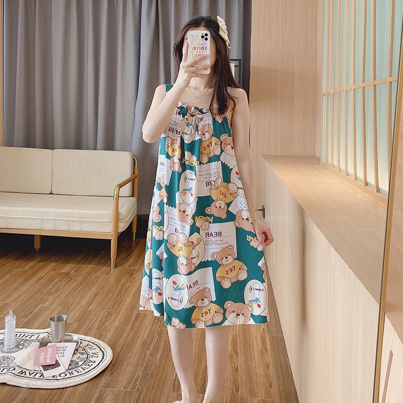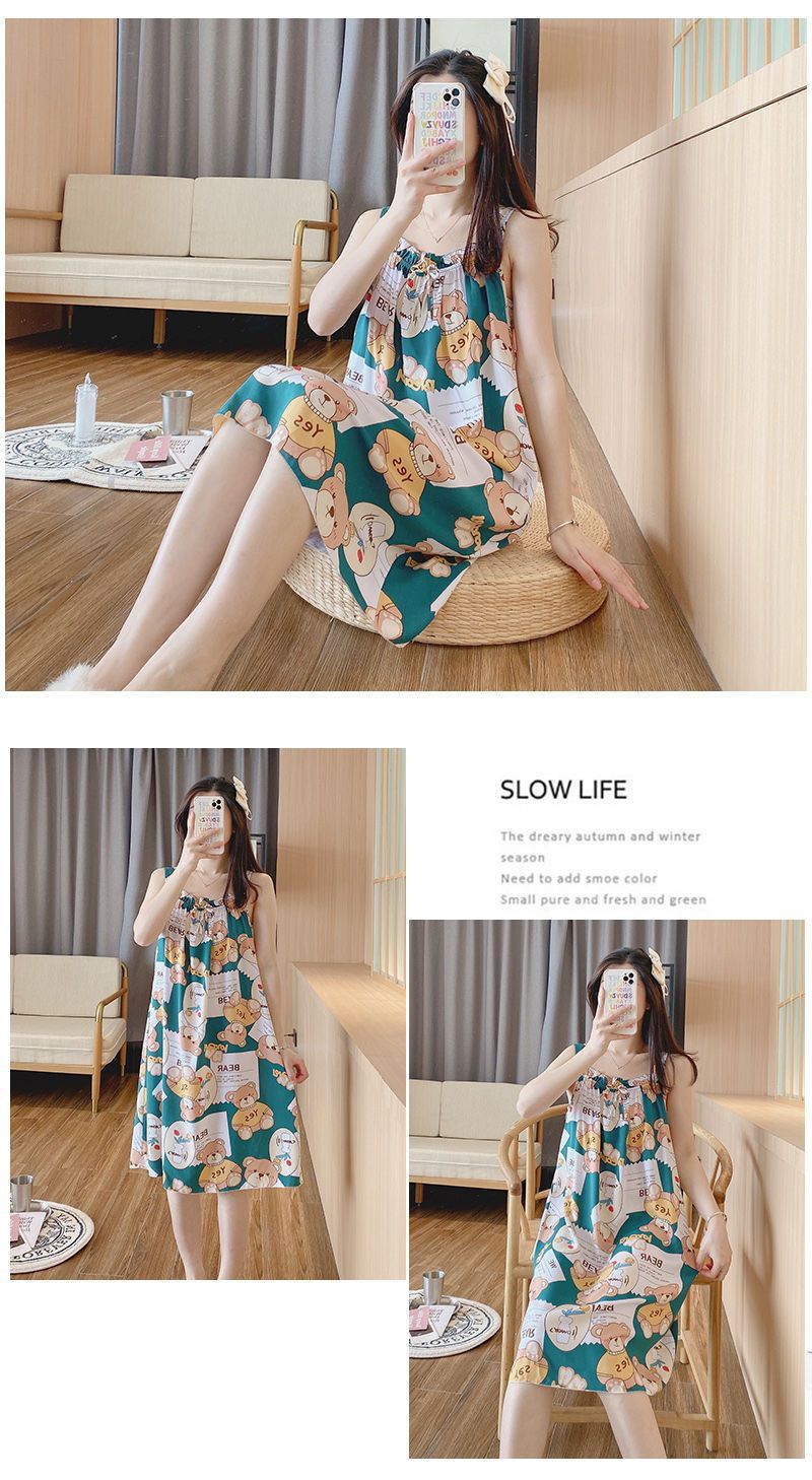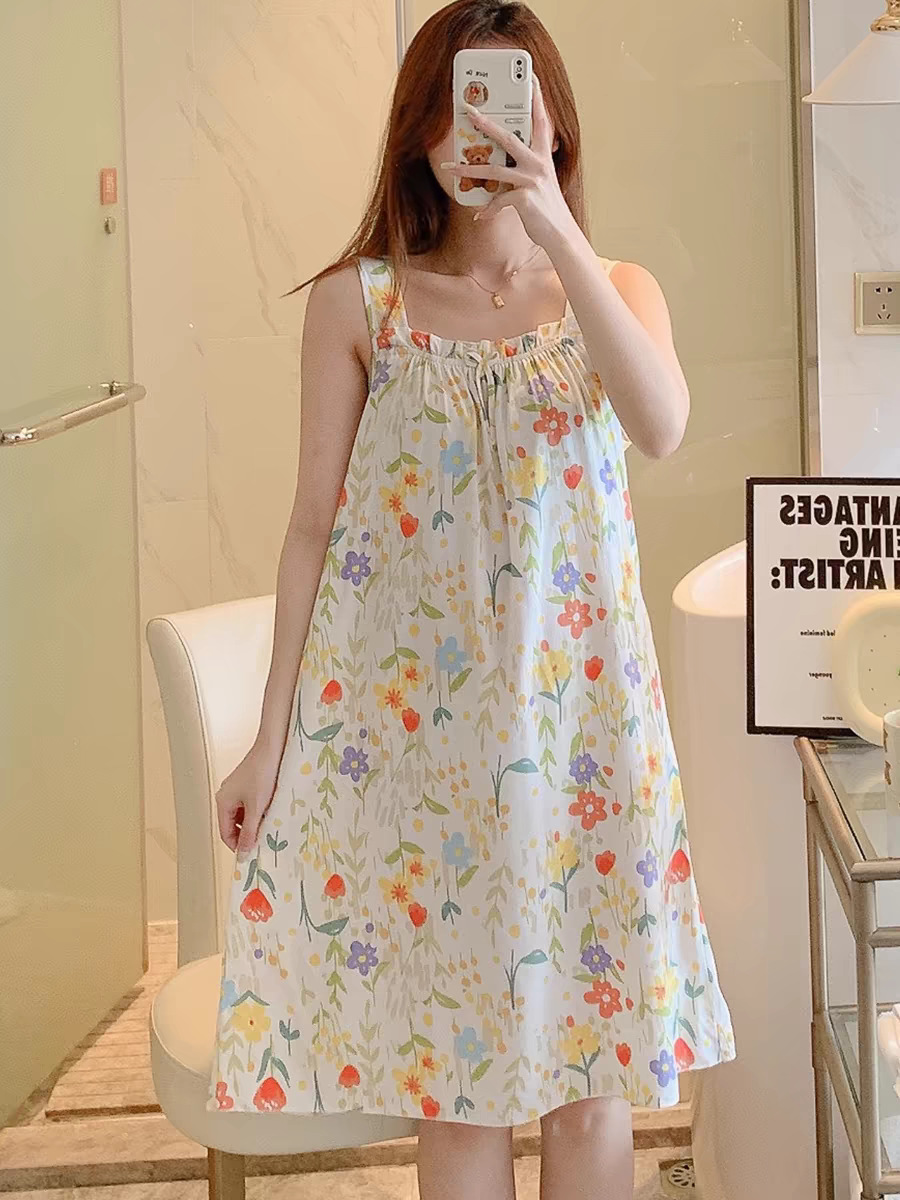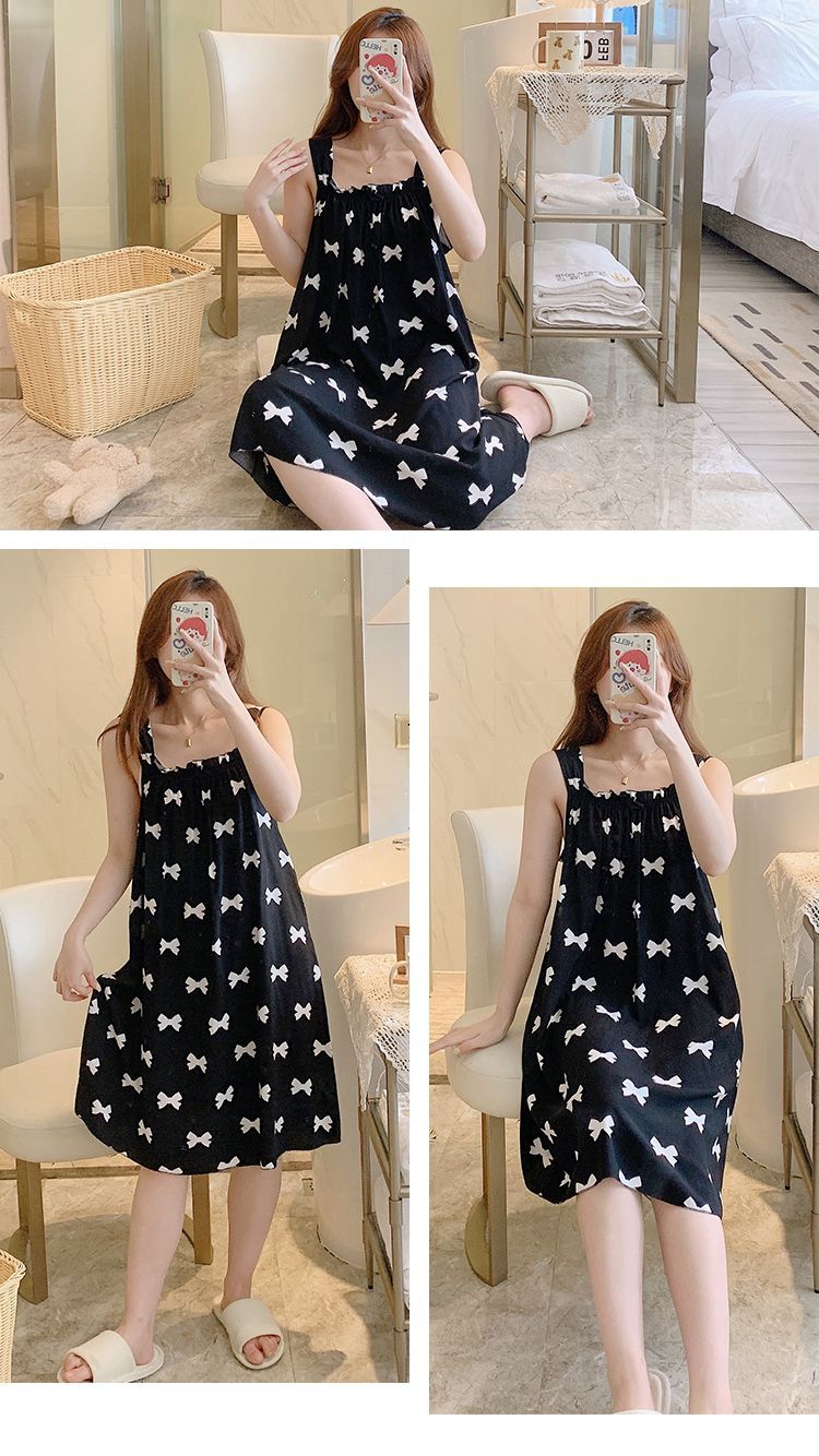 새로운 스타일 잠옷 여름 슬링 잠옷 순면 여자의 가정 옷 인쇄 달콤한 공주 귀여운 플러스 사이즈 면 실크스토어 가기