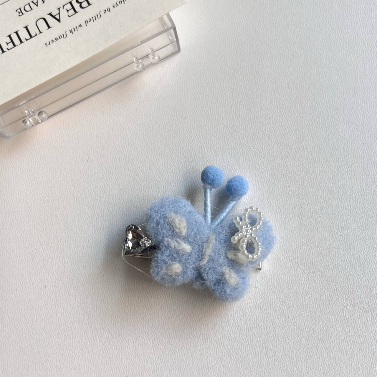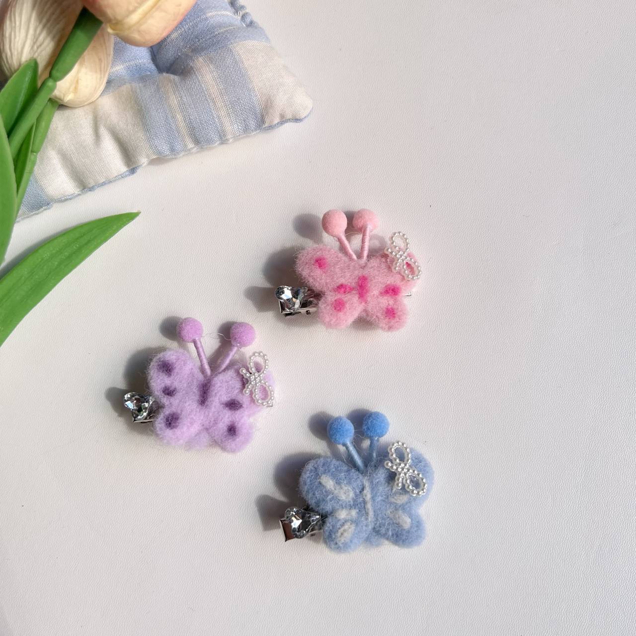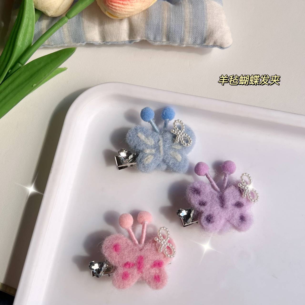 한국 새로운 양 펠트 나비 머리핀 모조 다이아몬드 색 나비 머리핀 달콤한 사이드 앞머리 클립 머리핀 헤어 액세서리