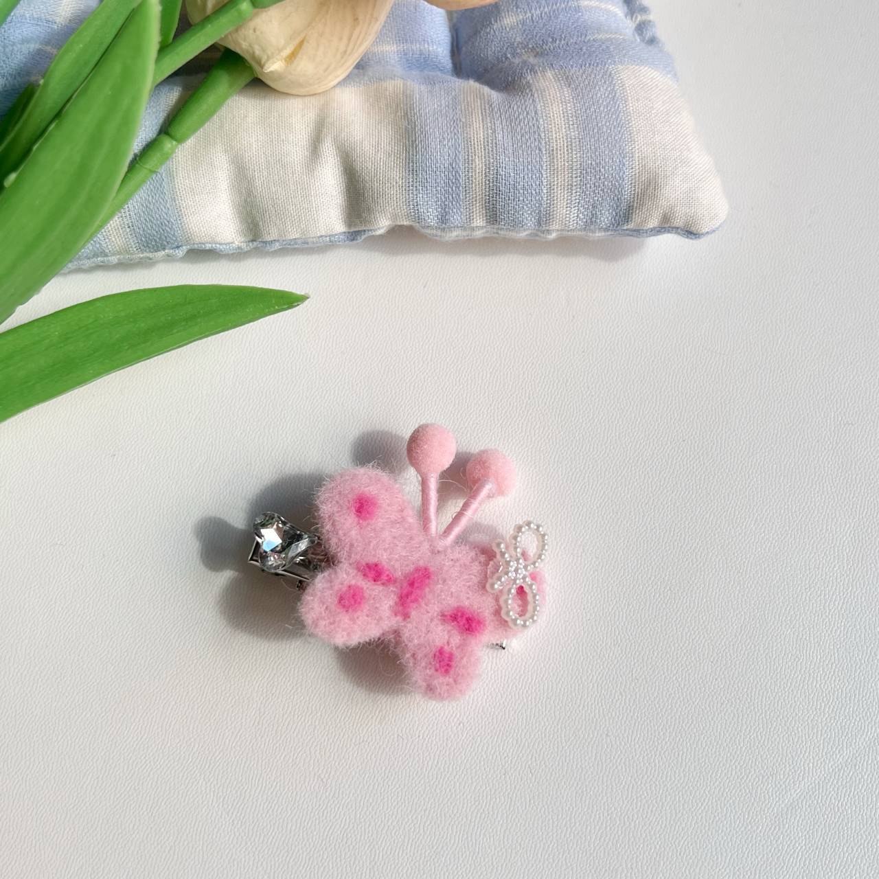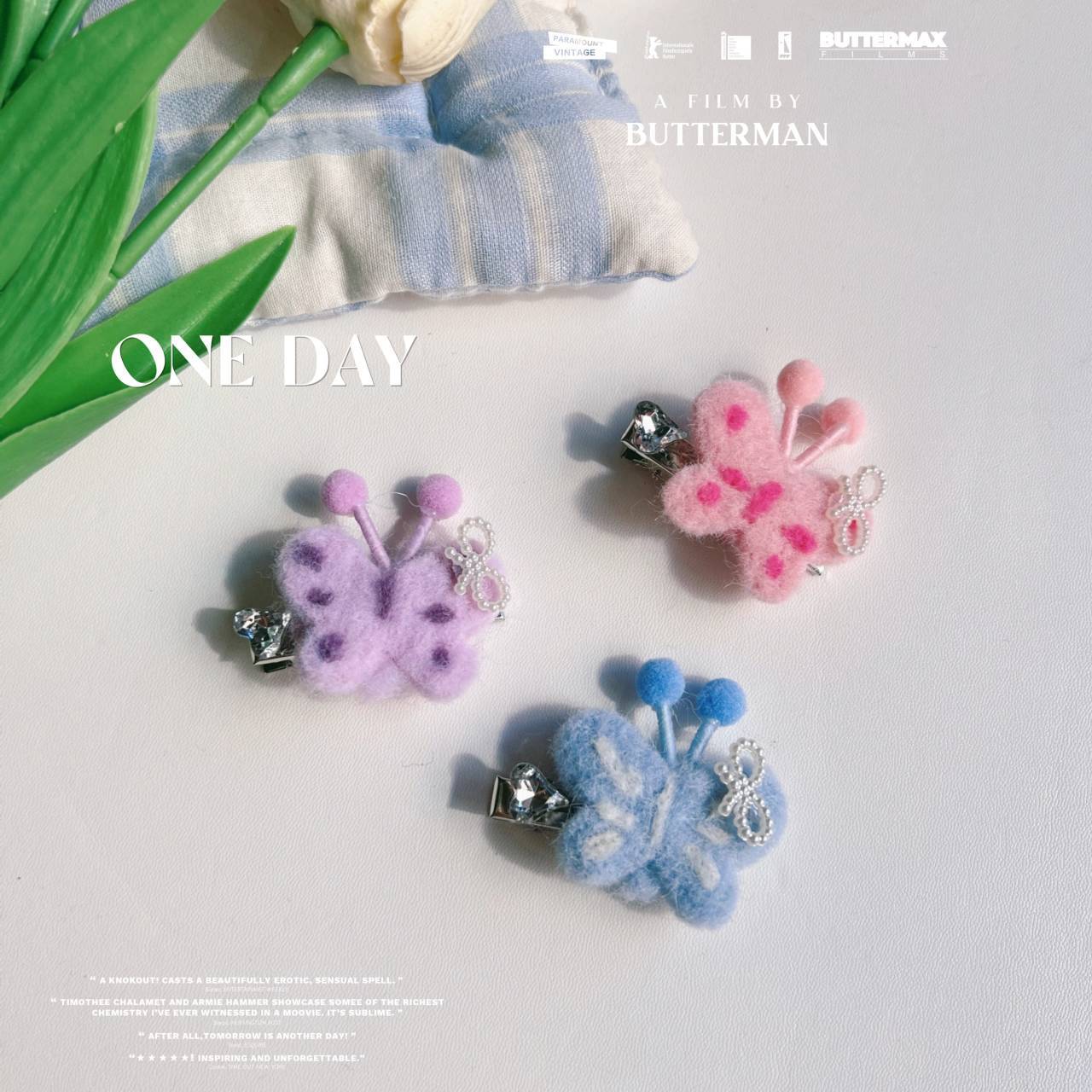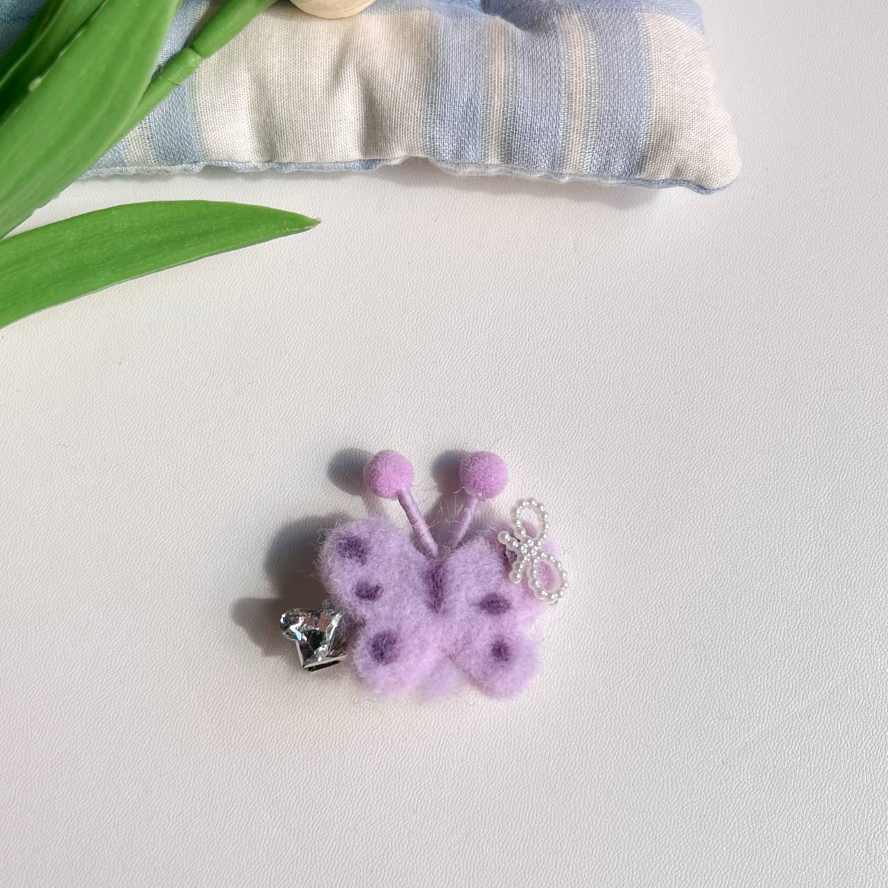 한국 새로운 양 펠트 나비 머리핀 모조 다이아몬드 색 나비 머리핀 달콤한 사이드 앞머리 클립 머리핀 헤어 액세서리