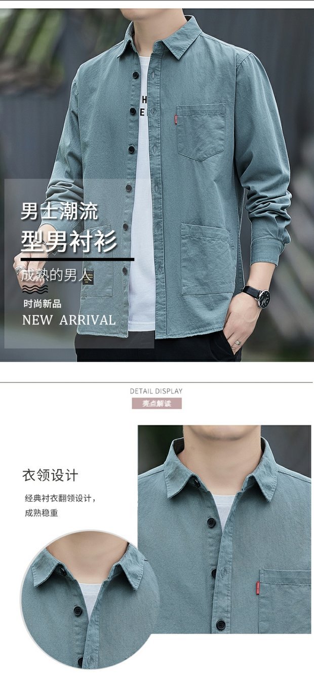 가을 재고 정리 긴팔 셔츠 남성 작업 캐주얼 느슨한 툴링 봄과 가을 다림질 프리 셔츠 코트 트렌디스토어 가기