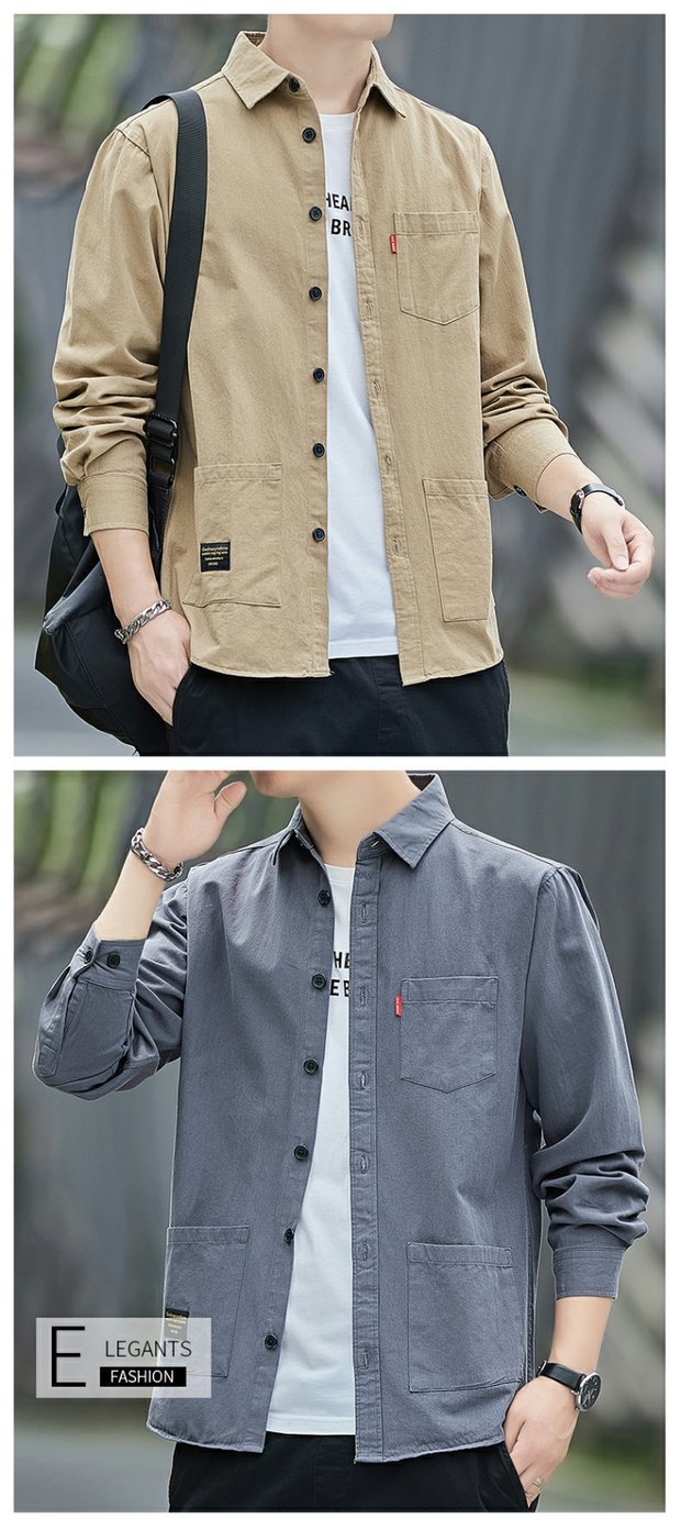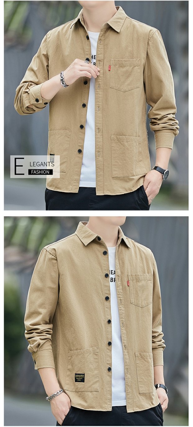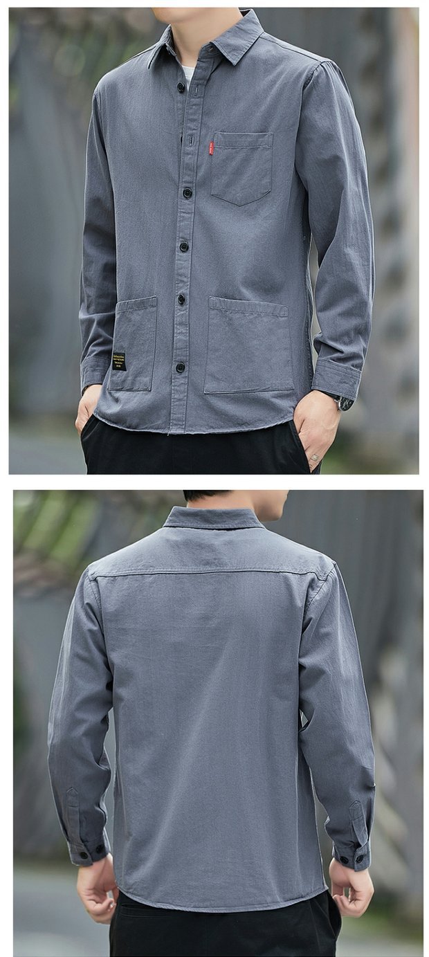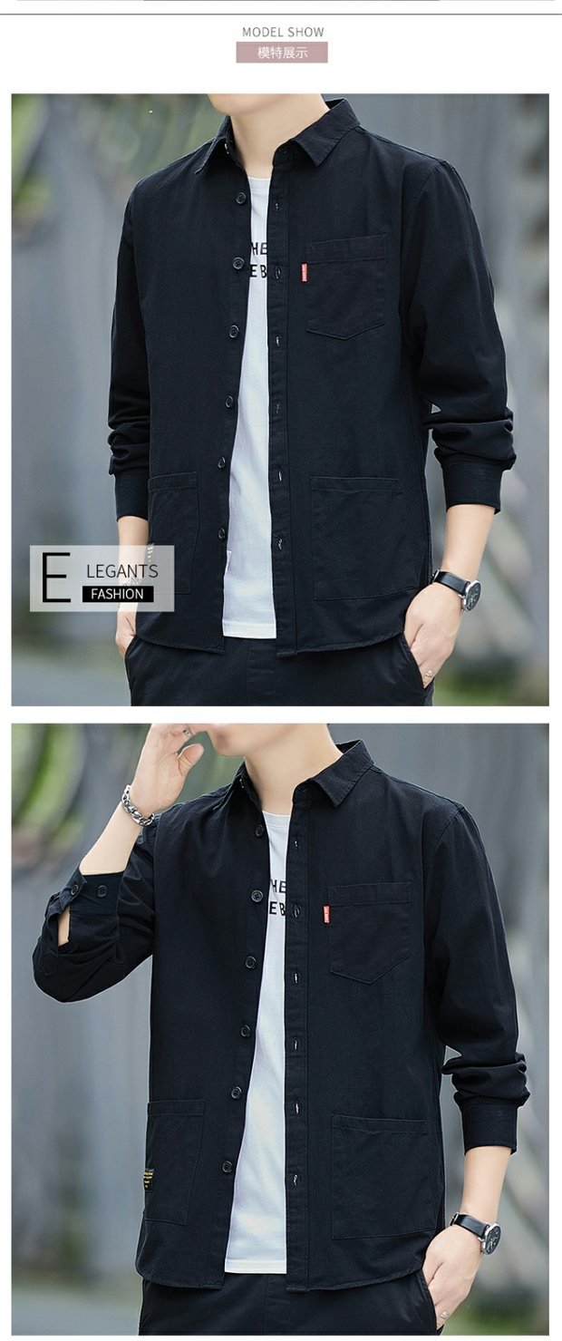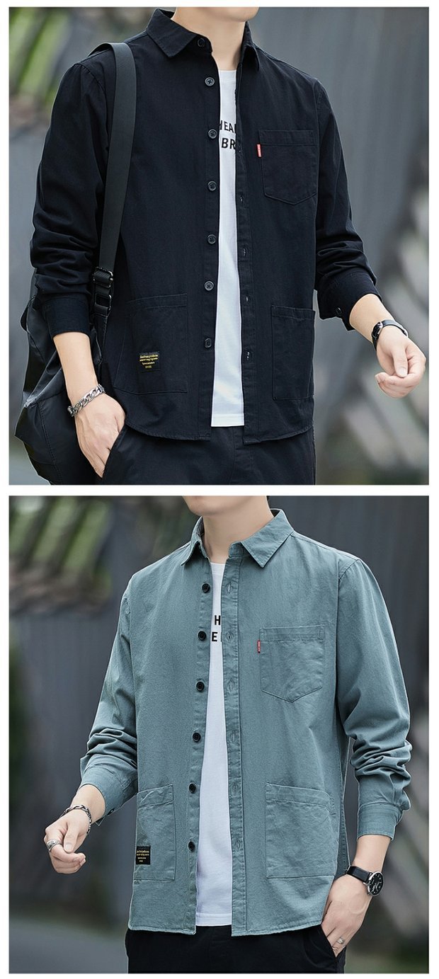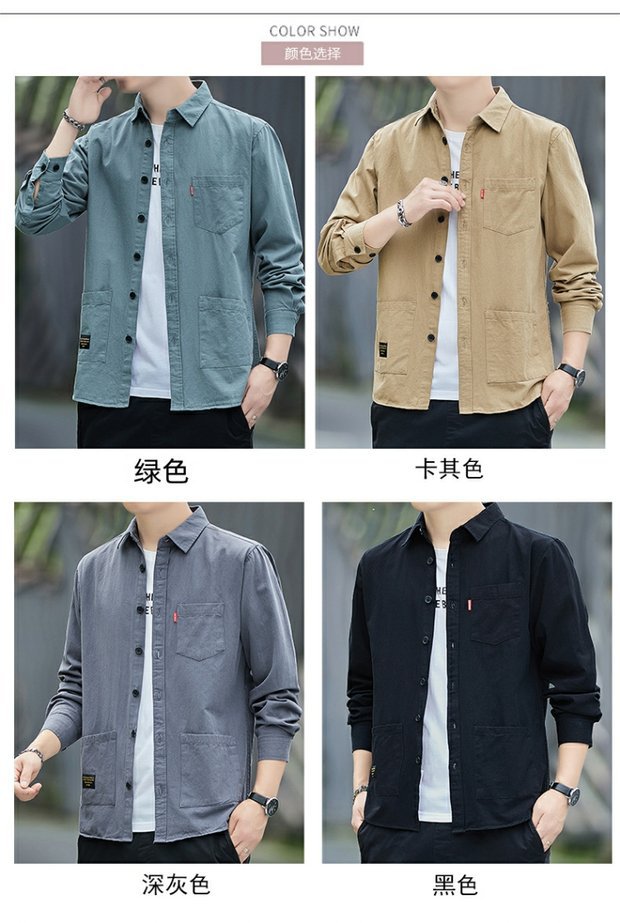 가을 재고 정리 긴팔 셔츠 남성 작업 캐주얼 느슨한 툴링 봄과 가을 다림질 프리 셔츠 코트 트렌디