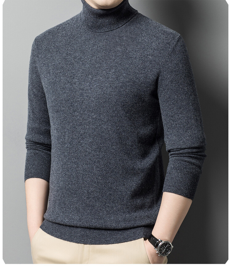 남성용 모조 울 터틀넥 스웨터 2023 남성용 새로운 겨울 비즈니스 캐주얼 중년 얇은 내부 따뜻한 스웨터