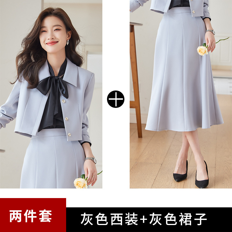Zihong Zihong 회색 작은 세트 세트 여성 가을 패션 기질 여신 팬 레저 세트 재킷 337