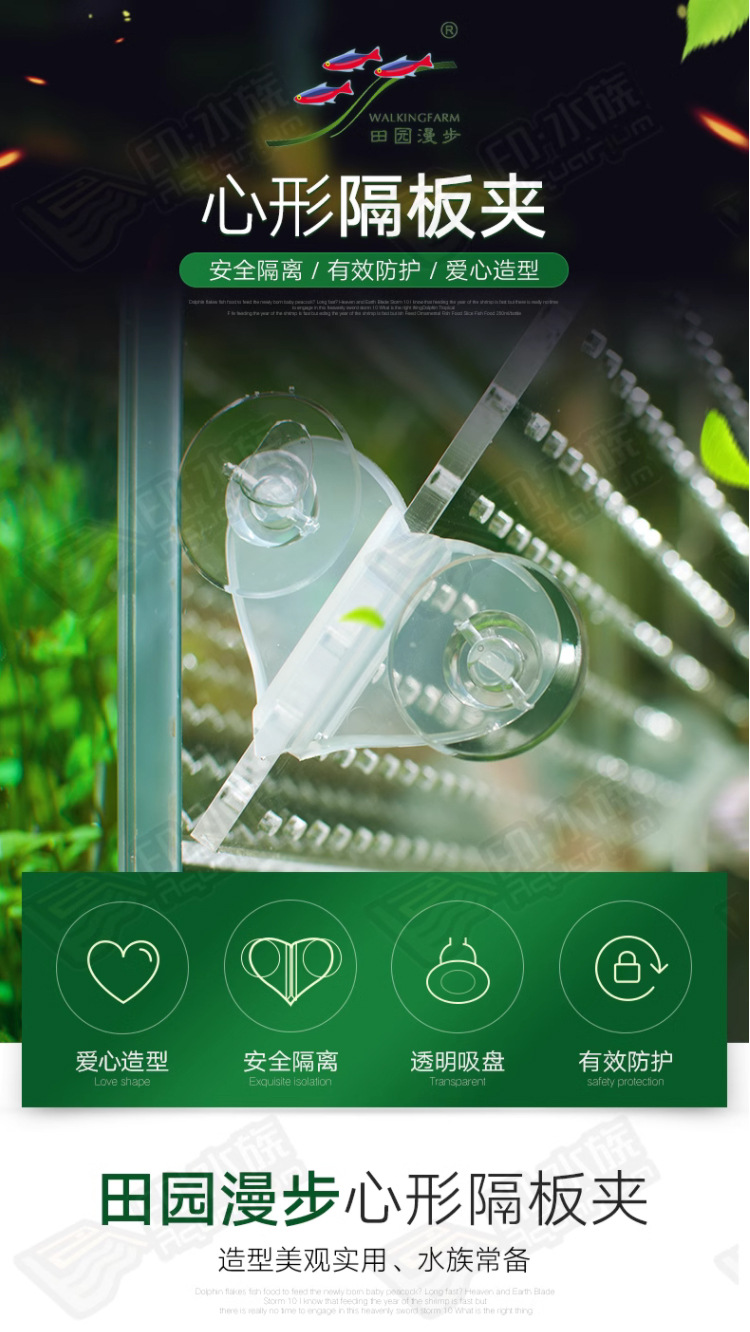 목가적 인 산책 하트 모양의 파티션 클립 어항 파티션 아크릴 파티션 유리 절연 도구 브래킷 실리콘 흡입 컵