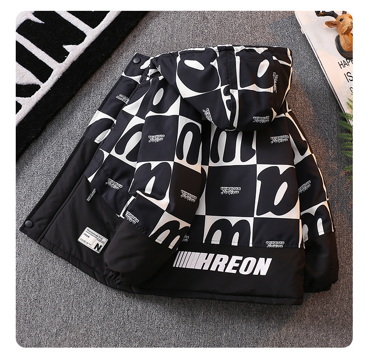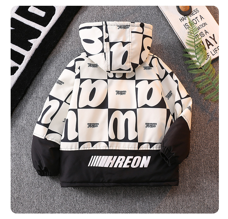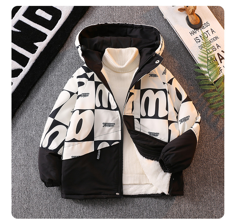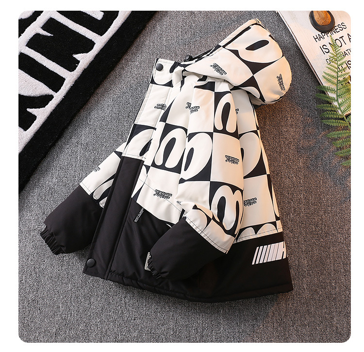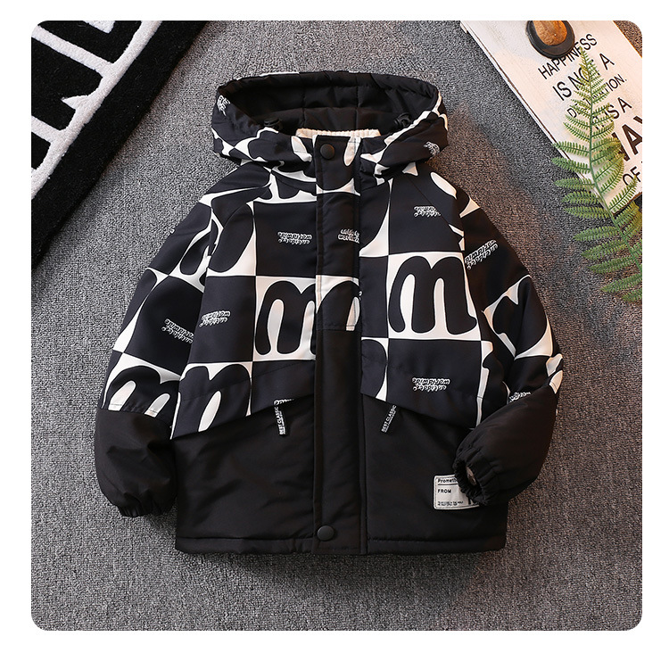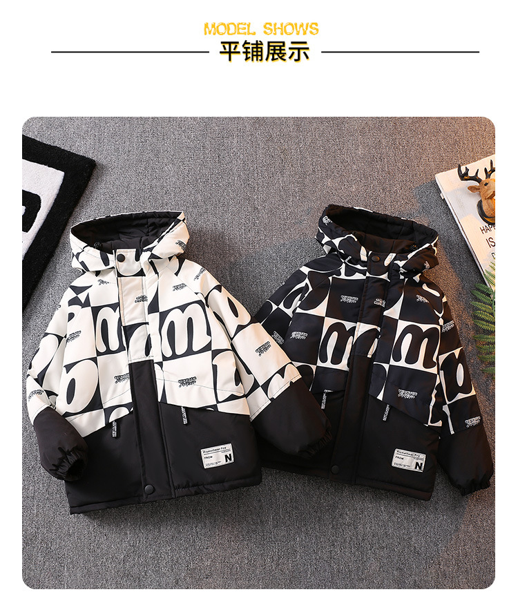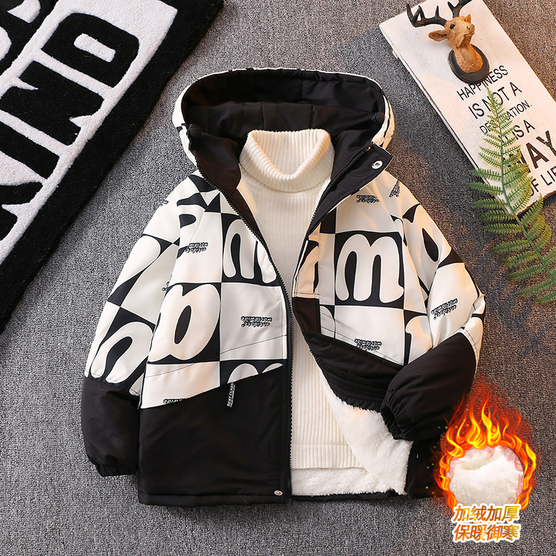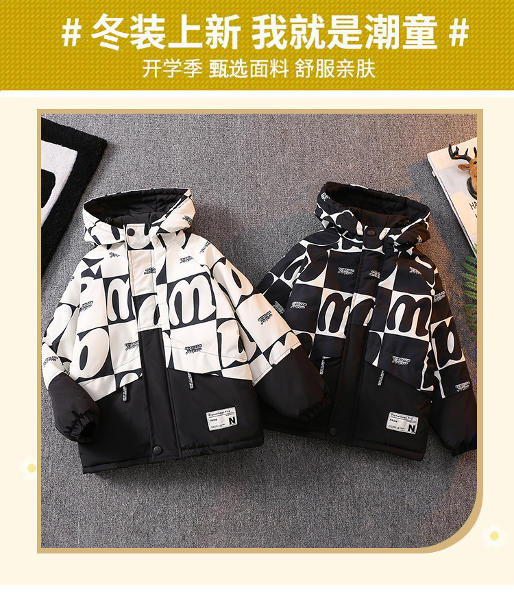남아 기모 Parksuit 코트 두꺼운 면 패딩 코트 2023 가을과 겨울 새로운 면 패딩 재킷 어린이 후드 탑스토어 가기