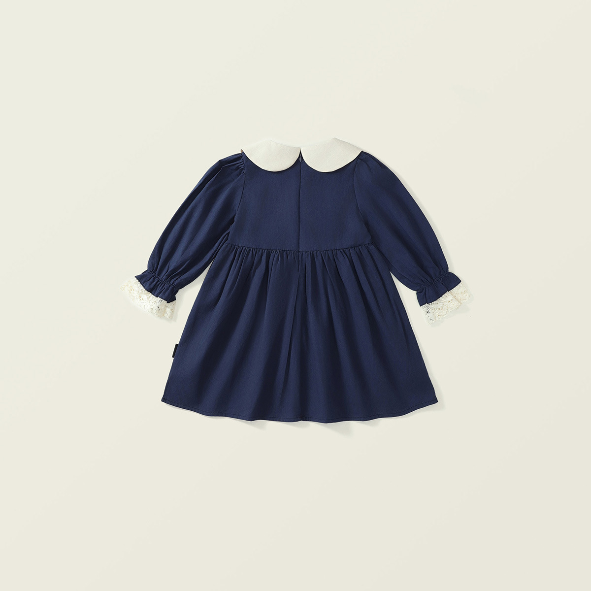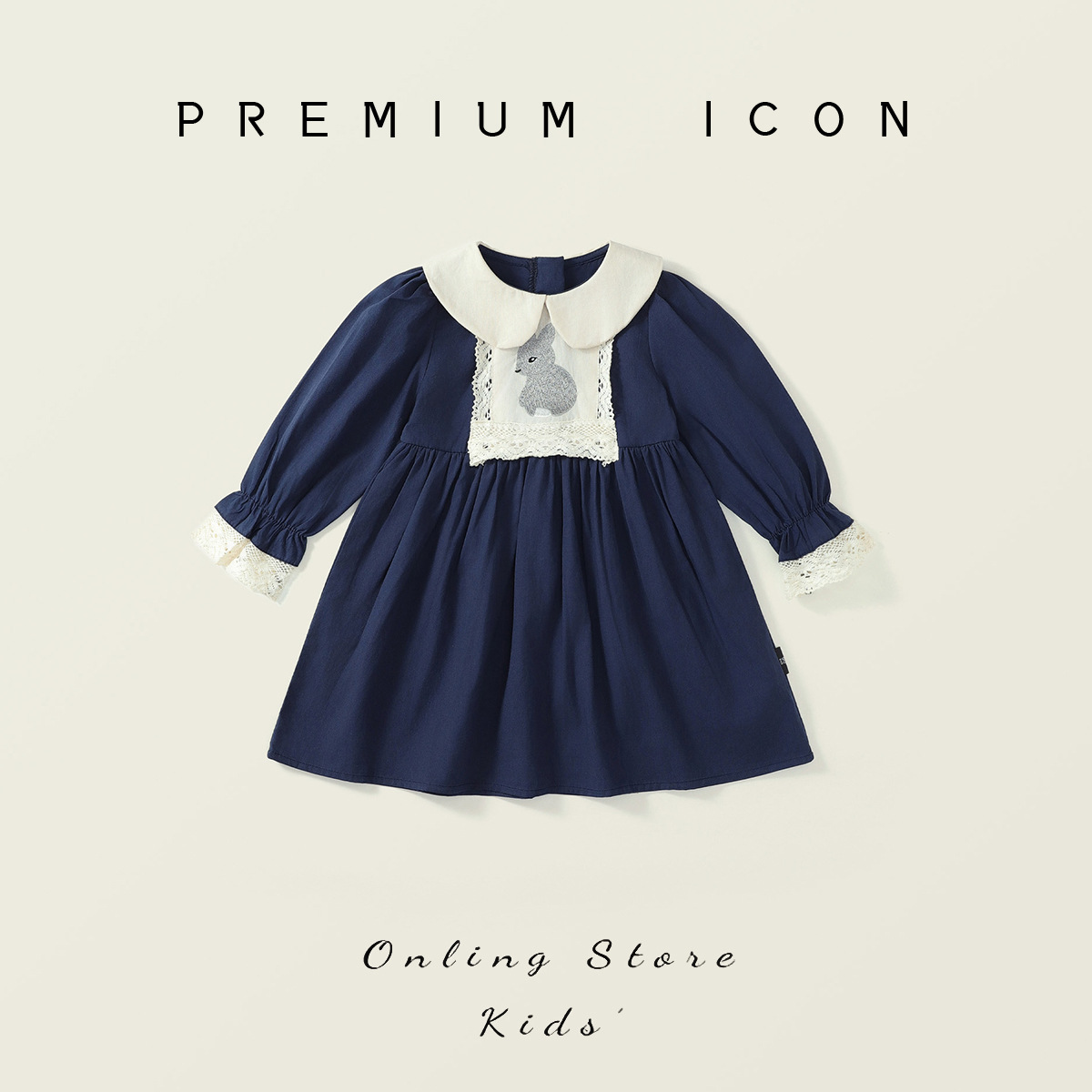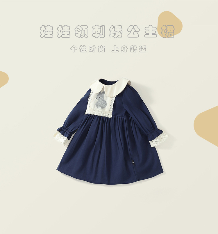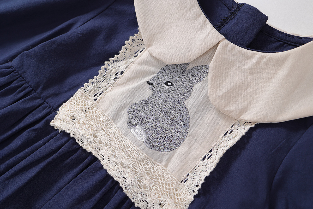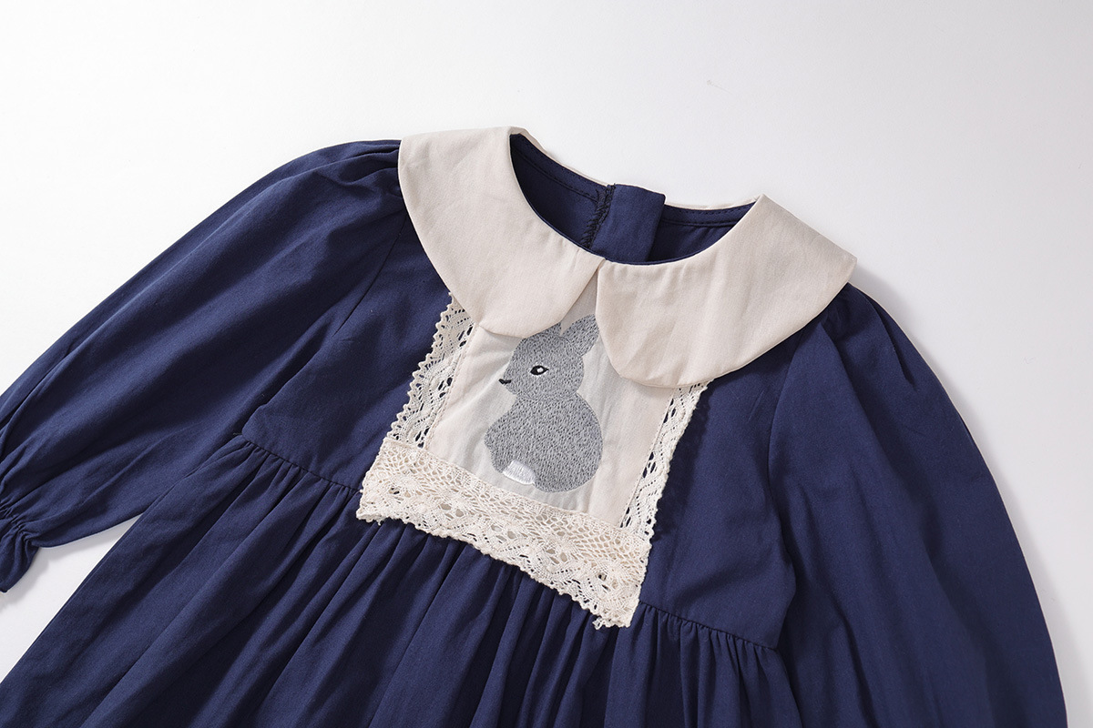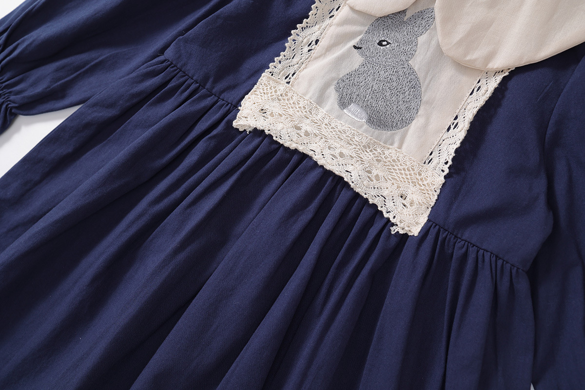 여자 인형 칼라 토끼 자수 드레스 가을 2022 한국어 긴 소매 네이비 블루 옷깃 공주 드레스 도매스토어 가기