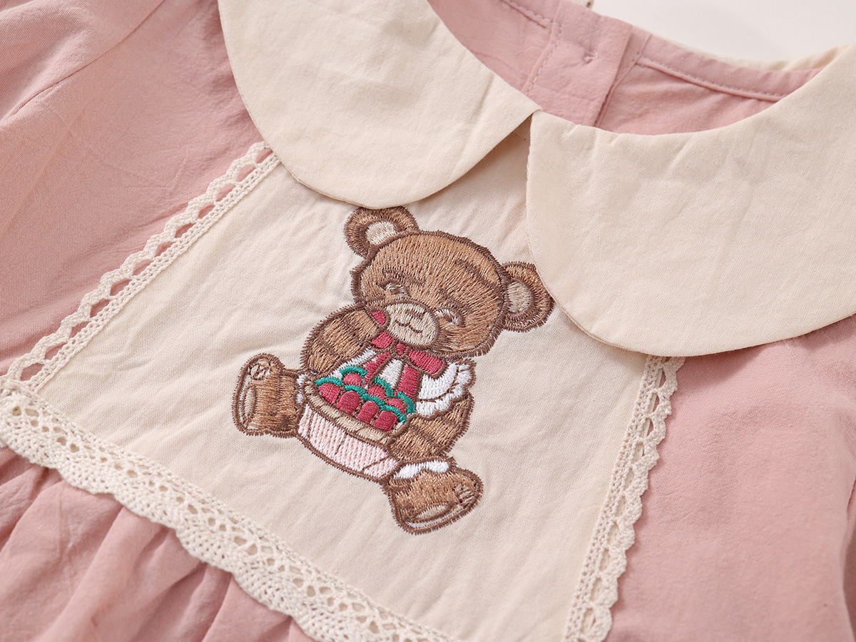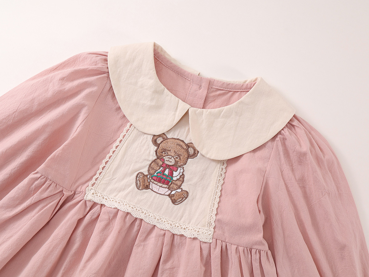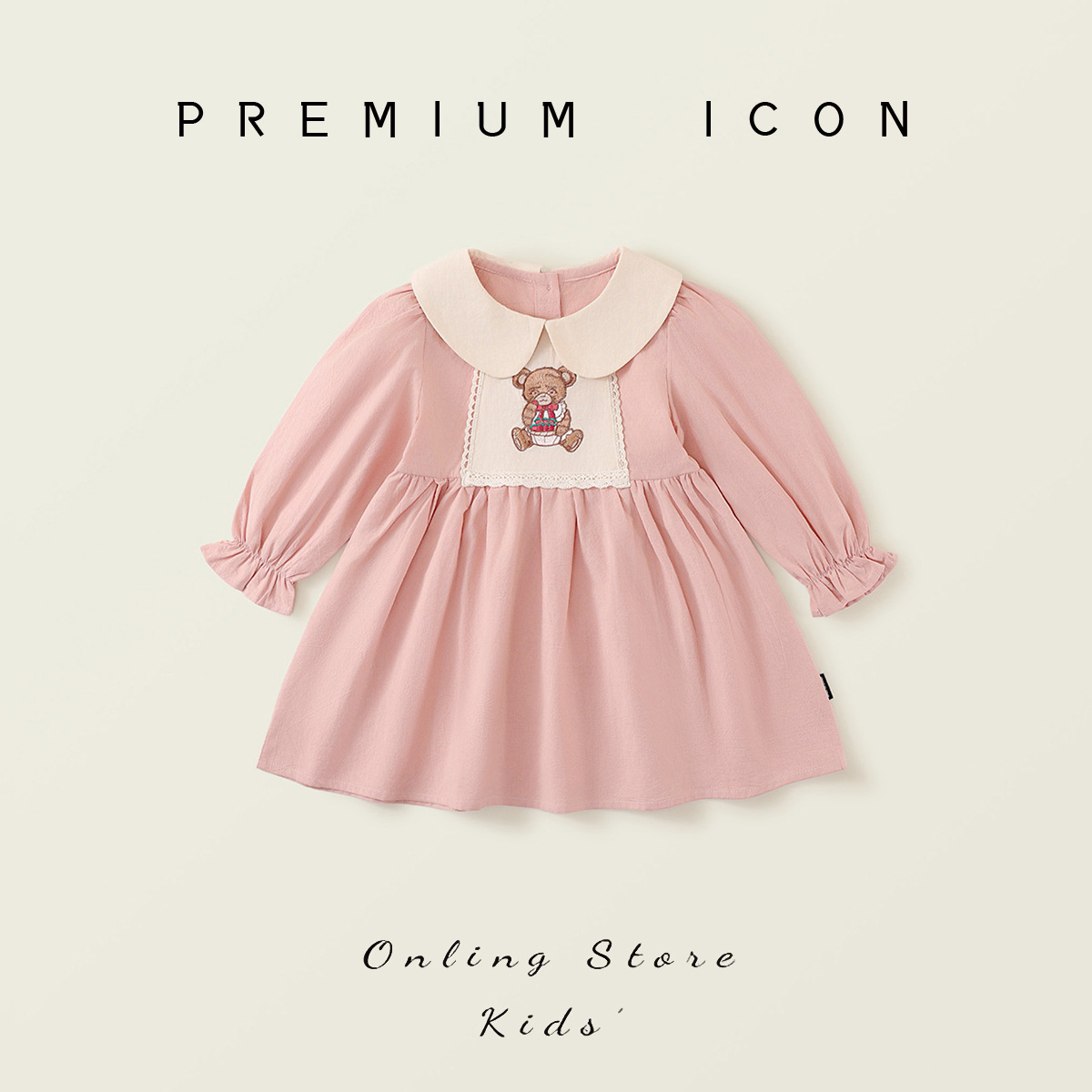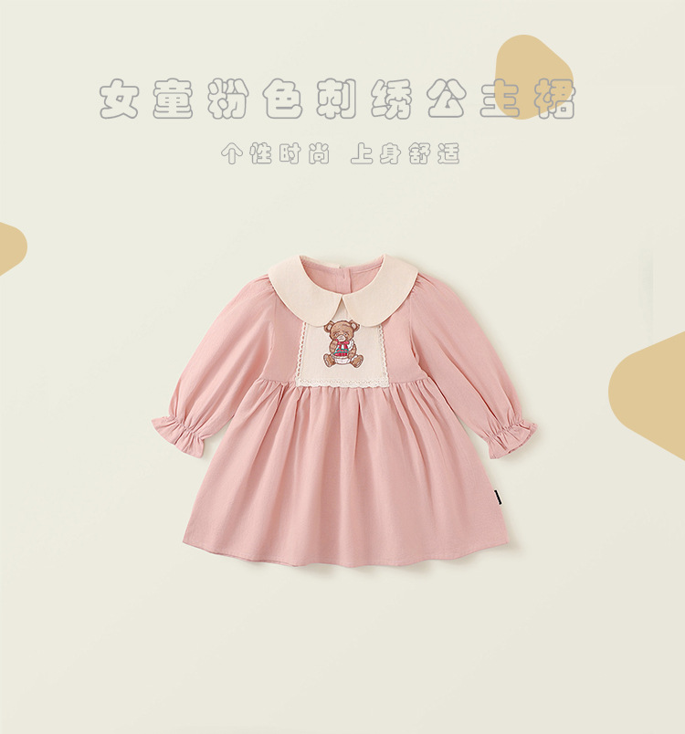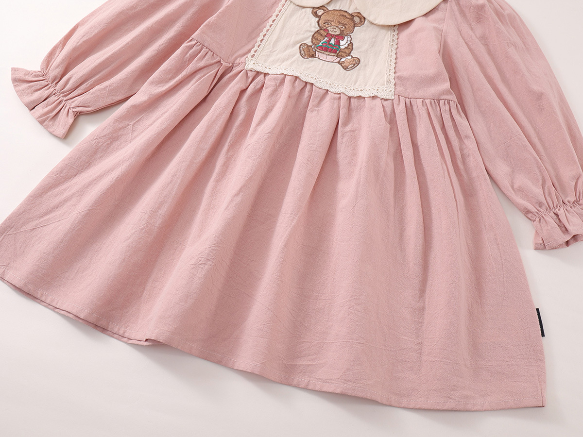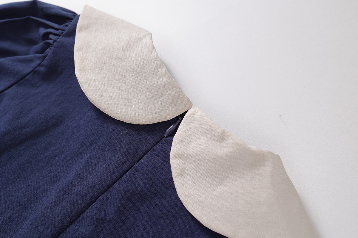 여자 인형 칼라 토끼 자수 드레스 가을 2022 한국어 긴 소매 네이비 블루 옷깃 공주 드레스 도매스토어 가기