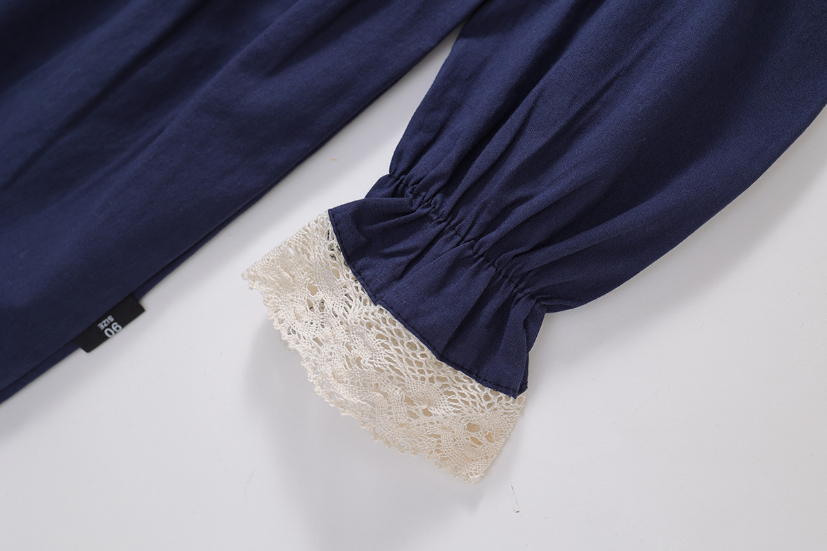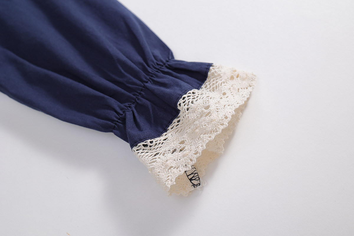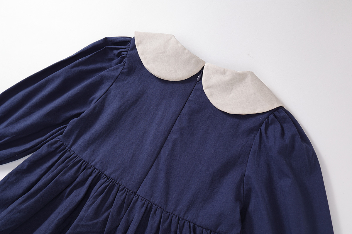 여자 인형 칼라 토끼 자수 드레스 가을 2022 한국어 긴 소매 네이비 블루 옷깃 공주 드레스 도매