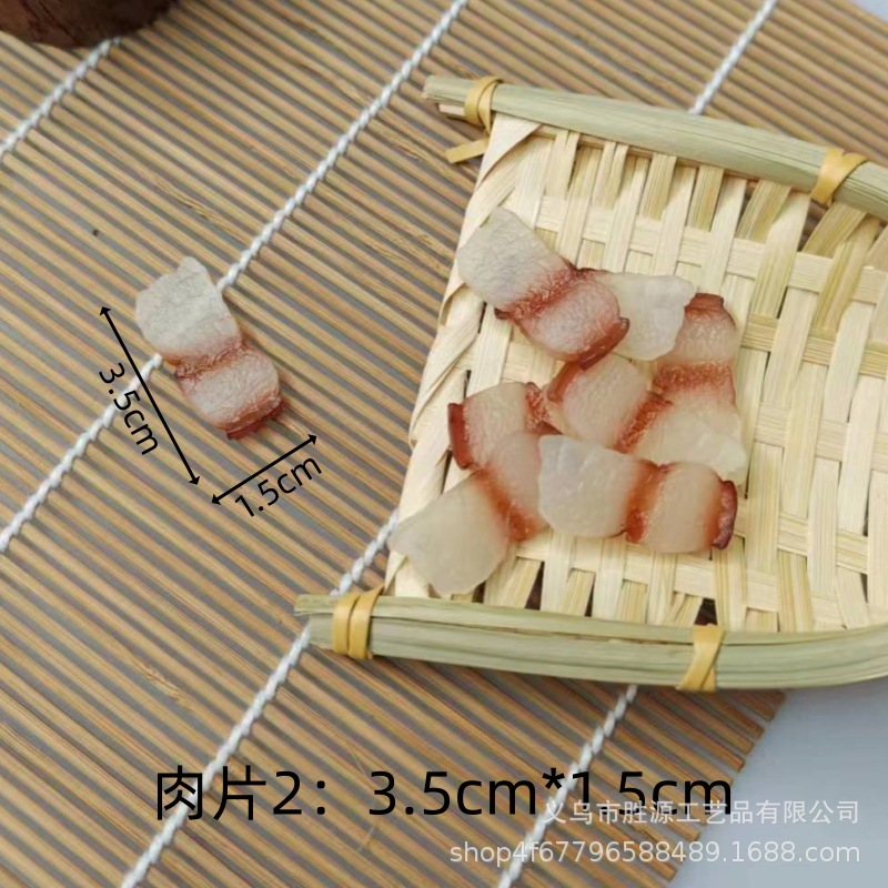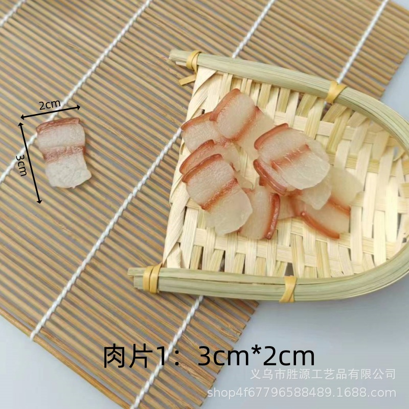 시뮬레이션 미니 쇠고기 스트립 고기 슬라이스 소시지 슬라이스 고기 스트립 찐 돼지 고기 슬라이스 고기 모델 장난감 음식 디스플레이 소품