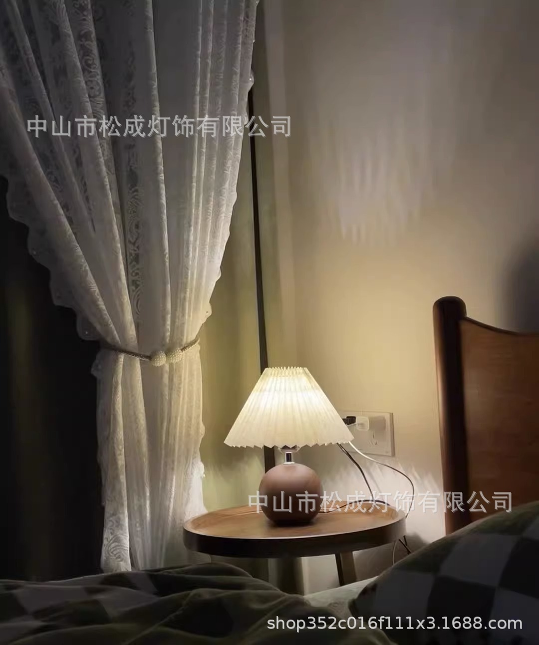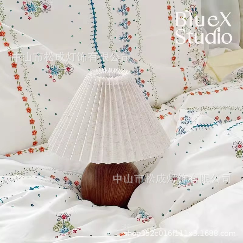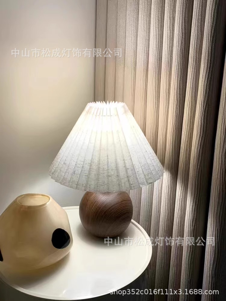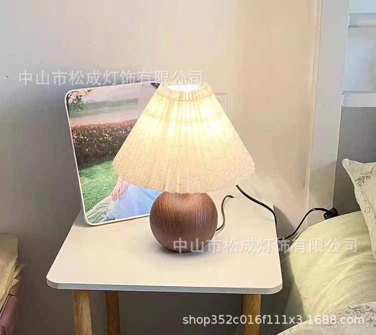 북유럽 바람 그물 빨간 빛 하이 엔드 소녀 침실 침실 램프 따뜻한 밤빛 호두 주름 테이블 램프스토어 가기