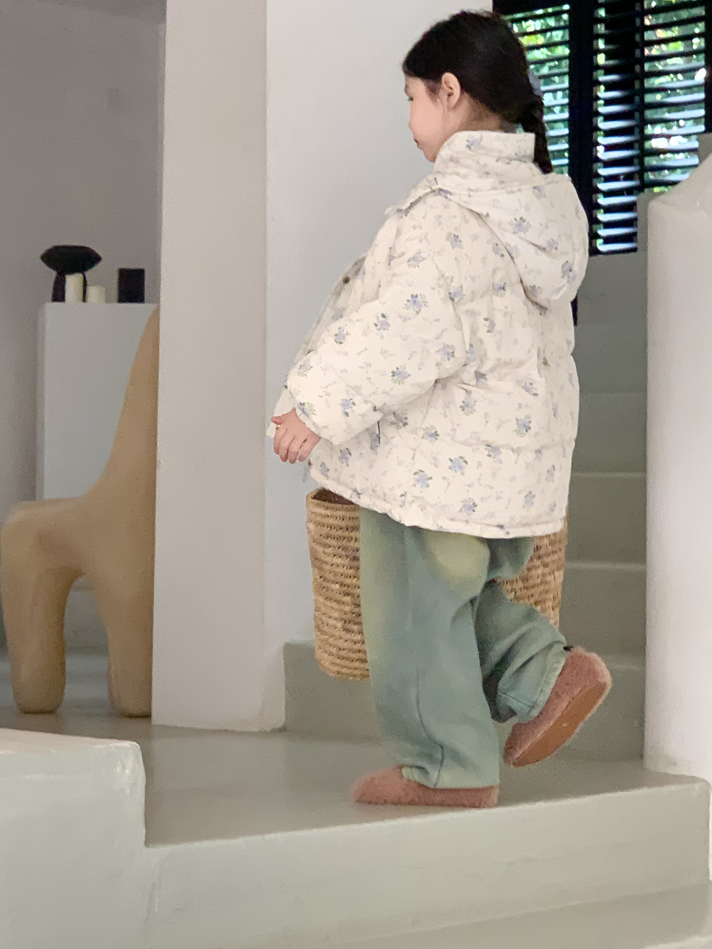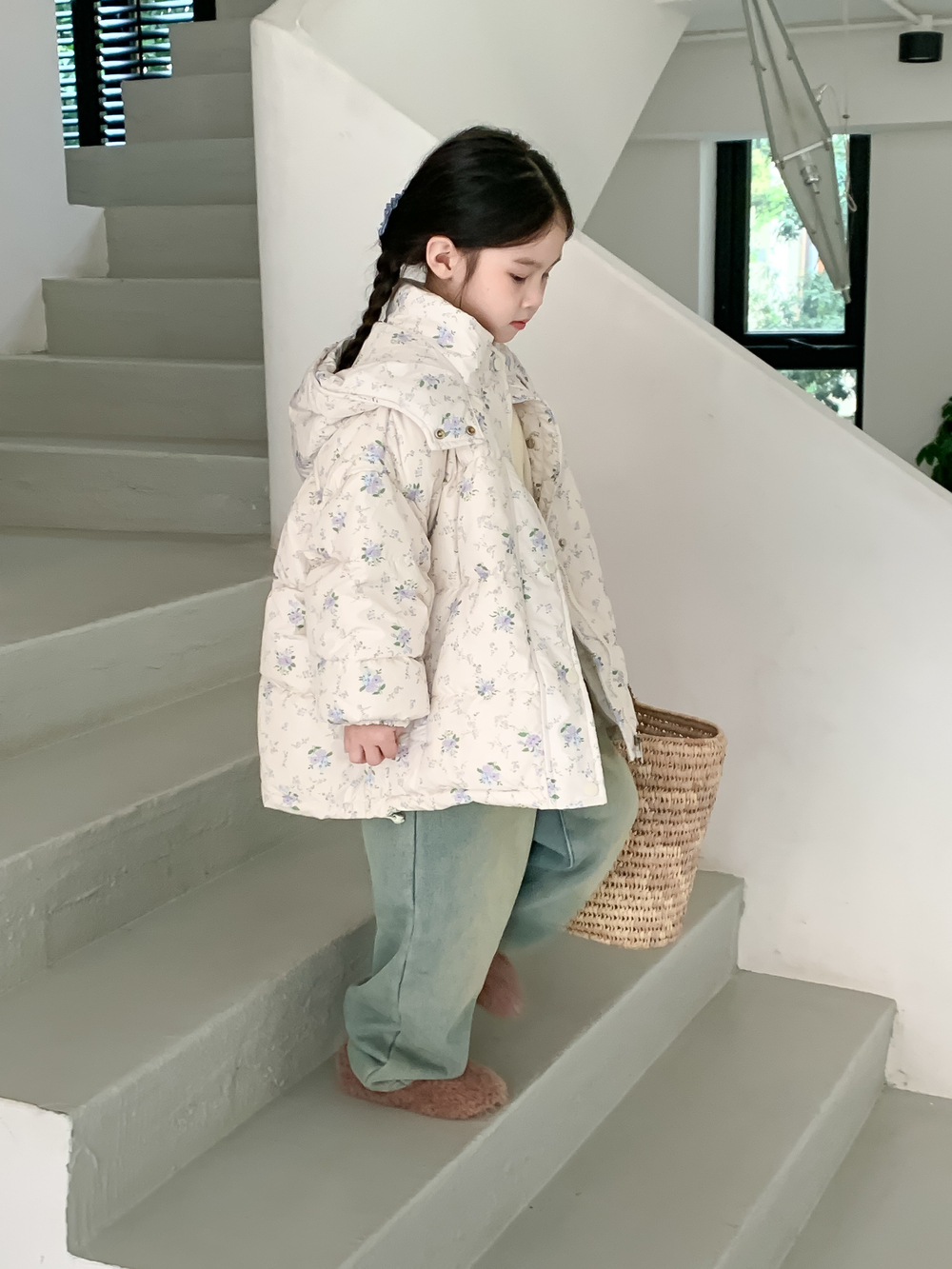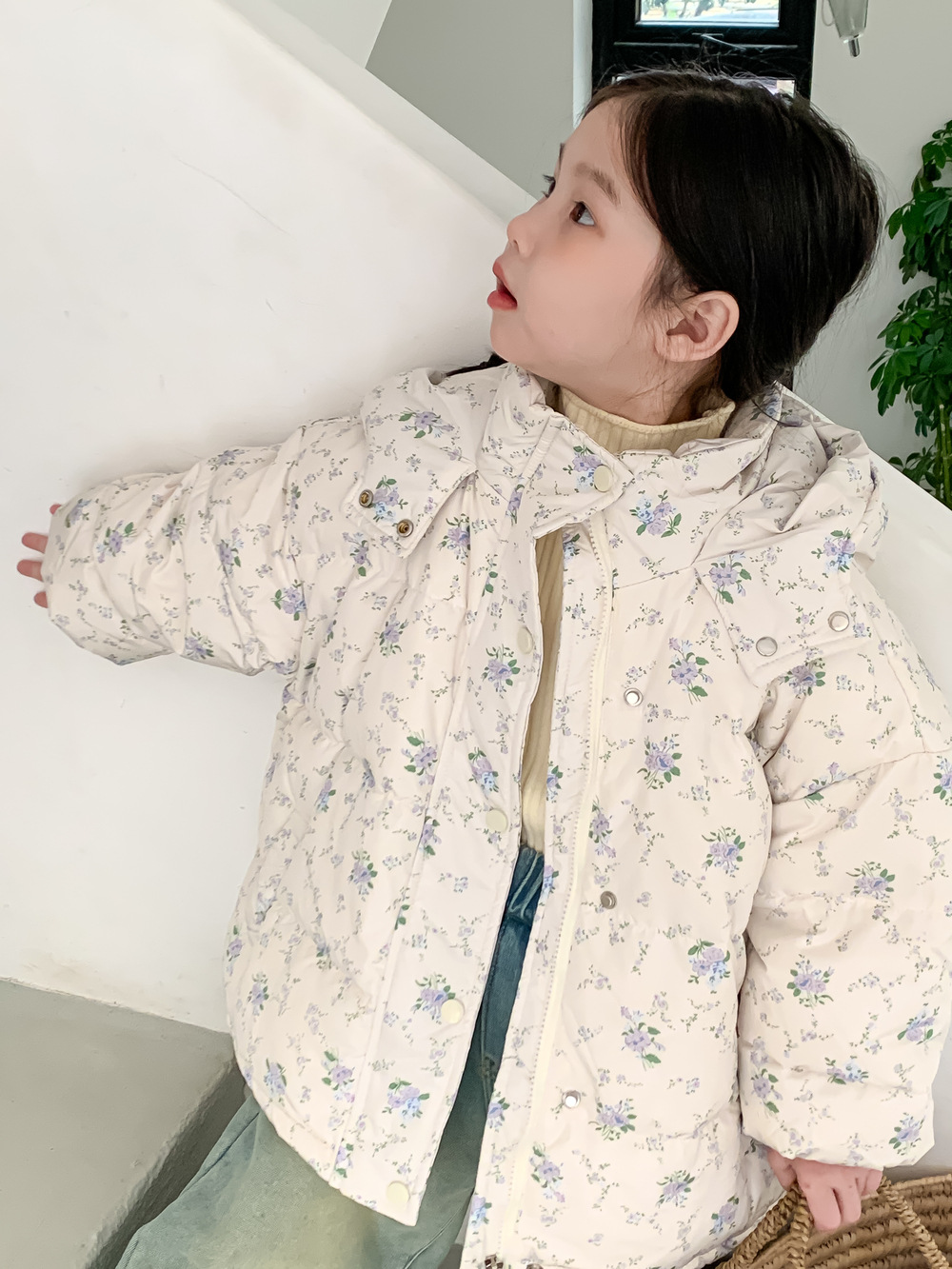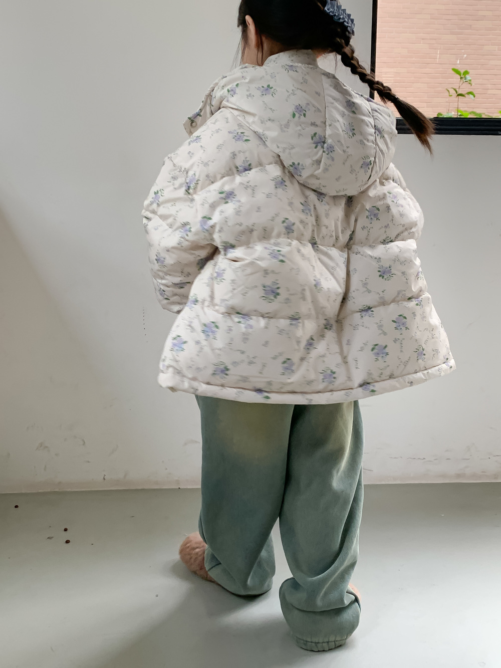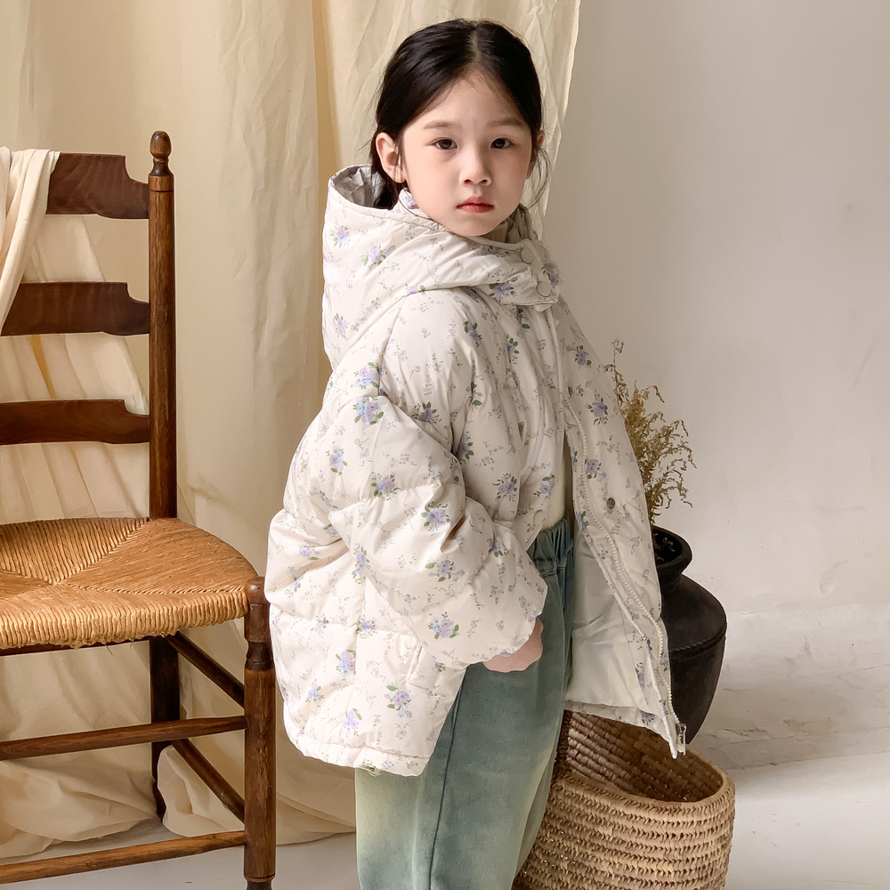 • 파란색과 보라색 작은 꽃 후드 다운 재킷