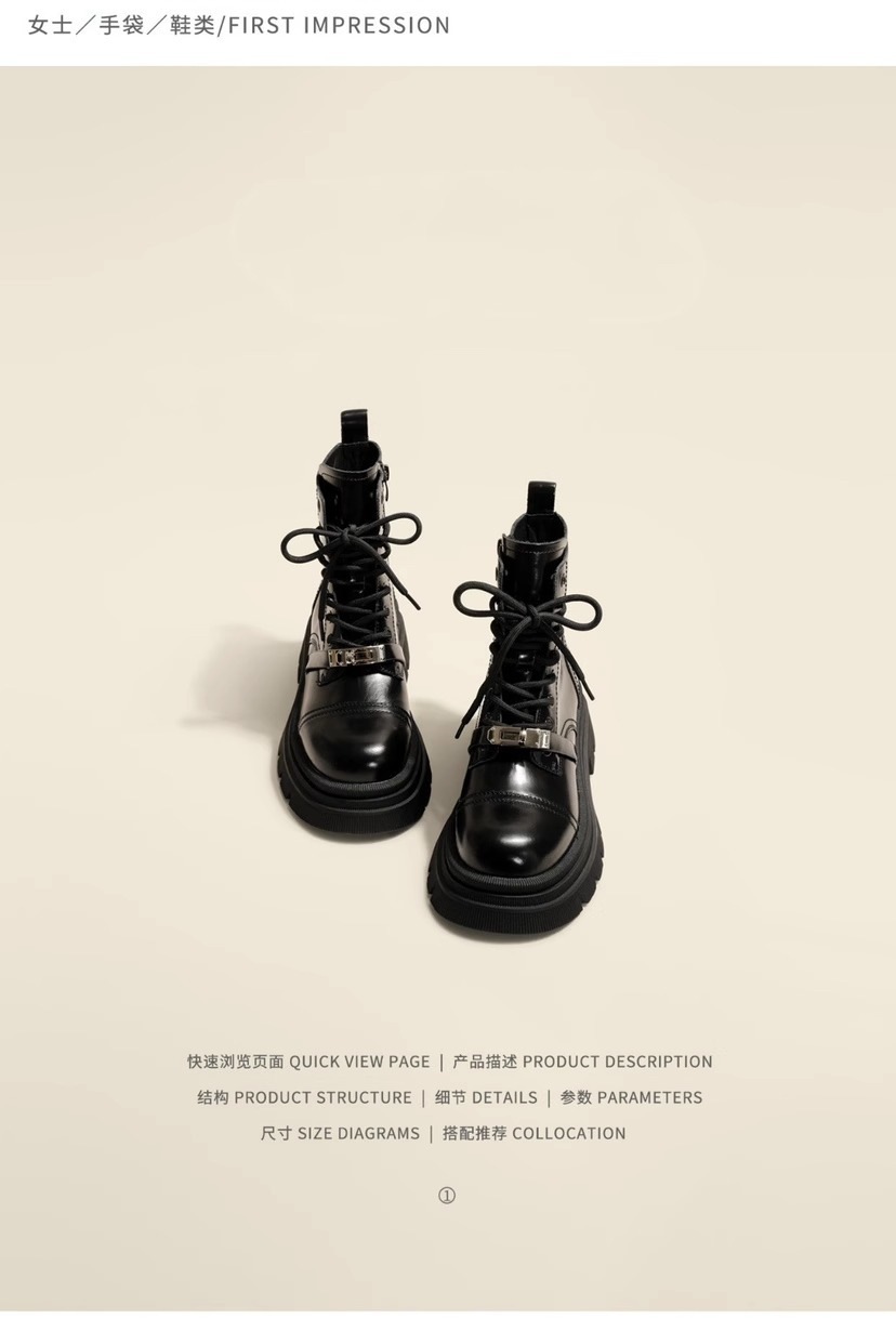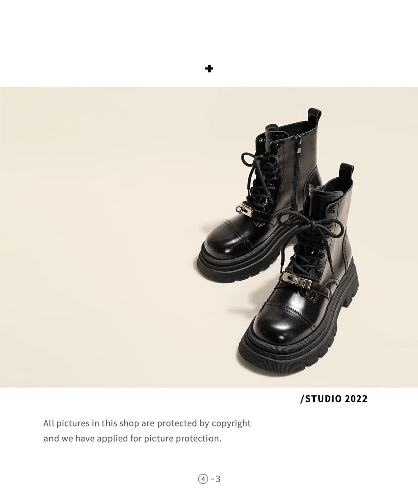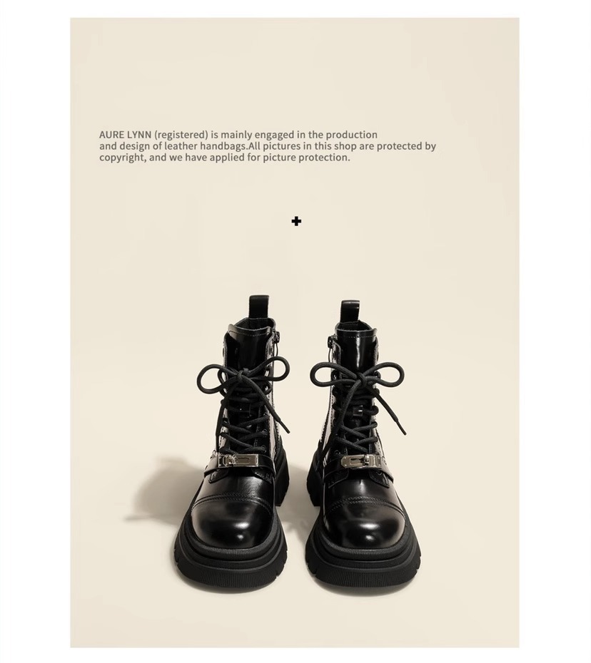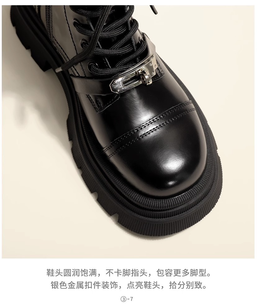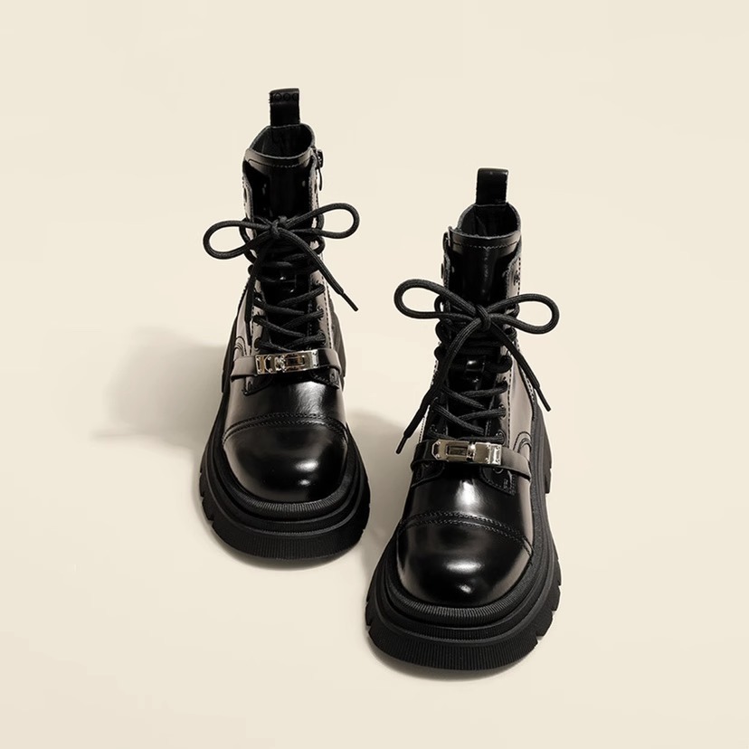 메탈 잠금장치 마틴 부츠 여성용 2024 가을 신상 영국풍 두꺼운 밑창 키높이 바이커 숏부츠 여성용스토어 가기