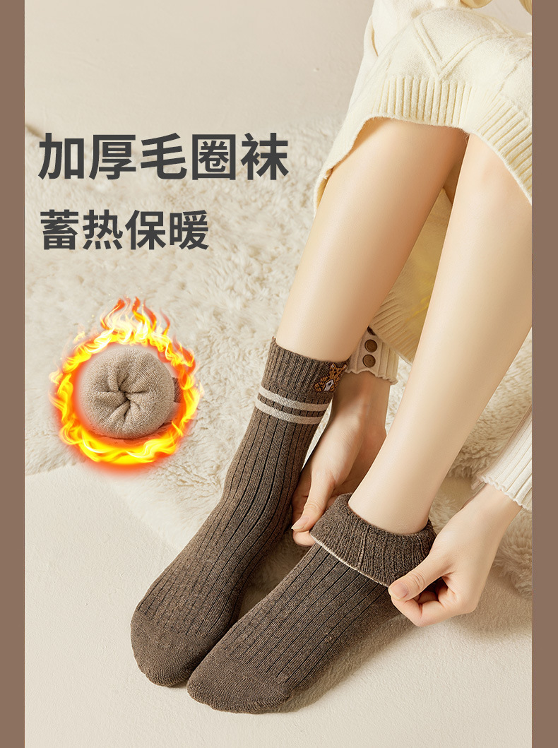 양말 여성 양말 겨울 두꺼운 따뜻한 테리 양말 외부 곰 양말 가을과 겨울 긴 양말 도매