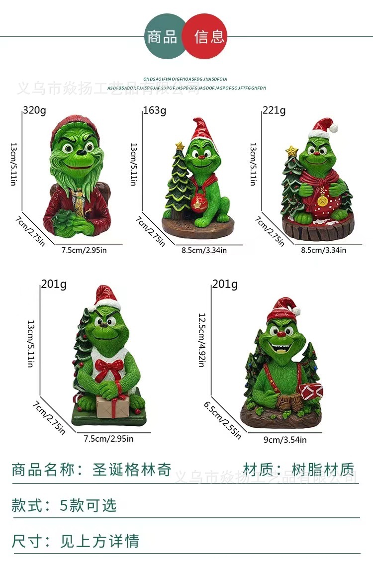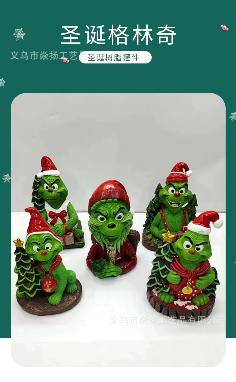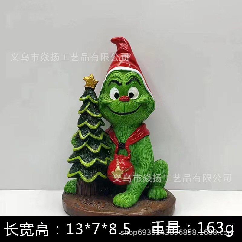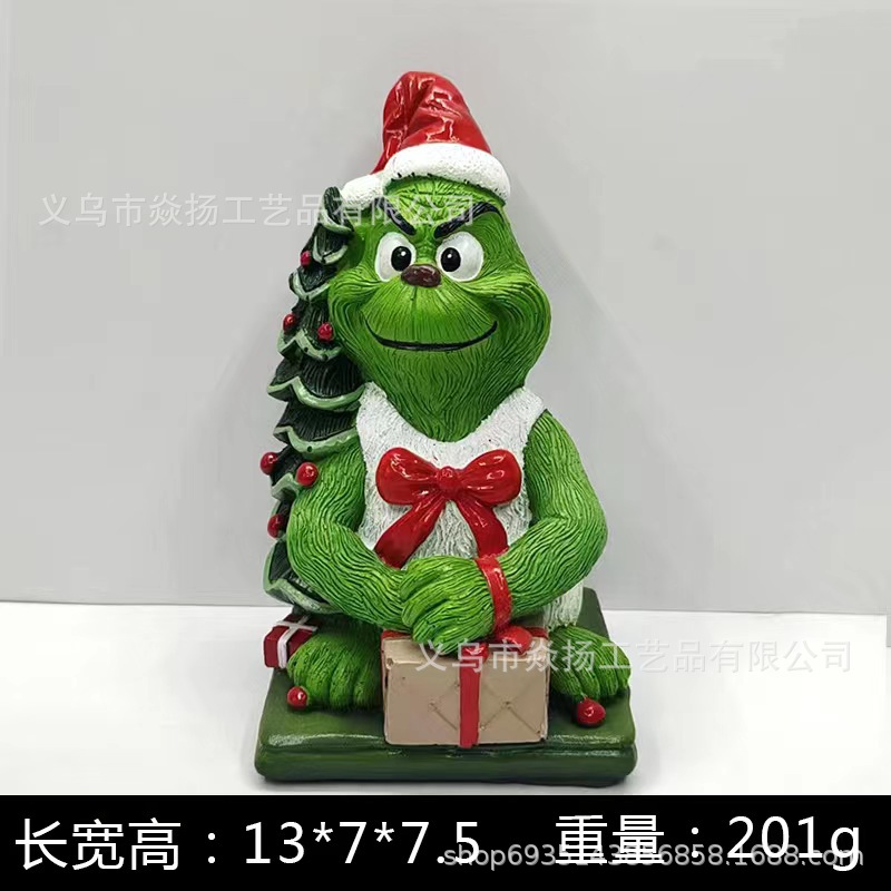 크로스 보더 크리스마스 그린치 그린 헤어 몬스터 크리스마스 분위기 선물 장식 창조적 인 장식 수지 공예스토어 가기