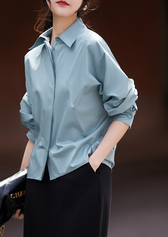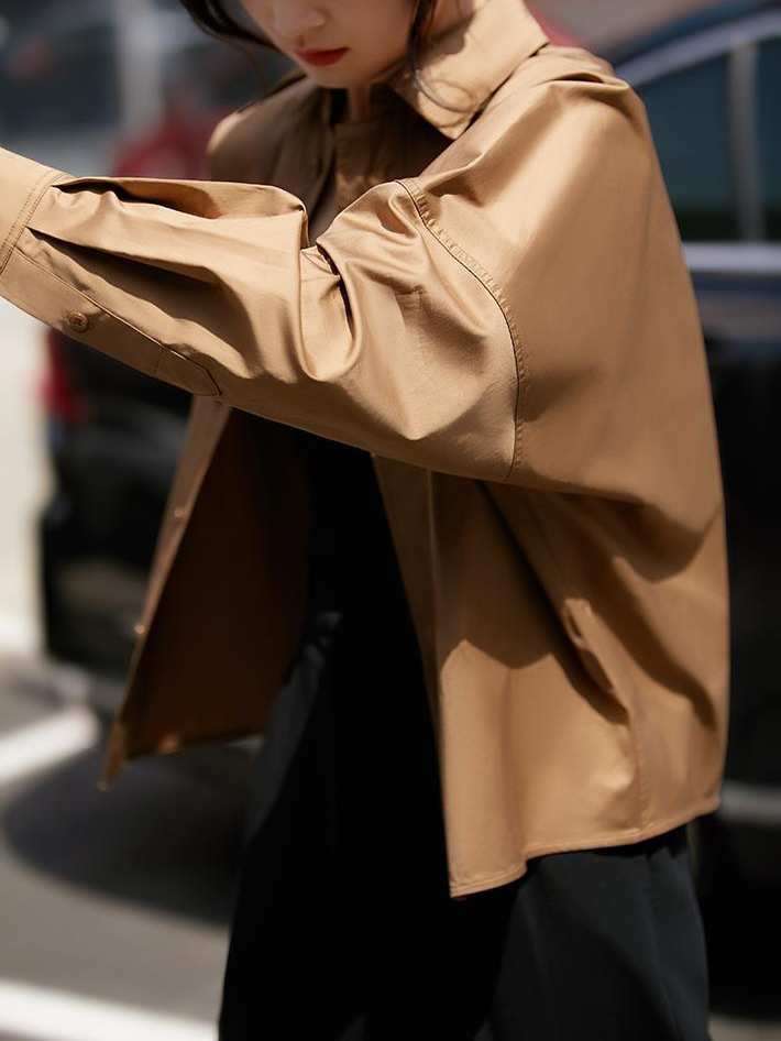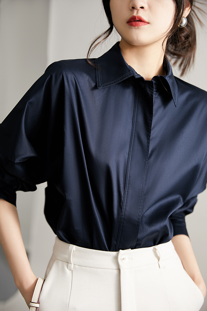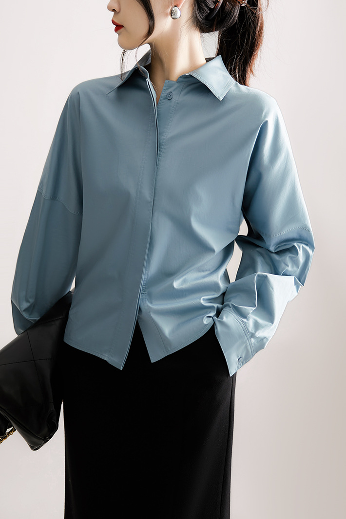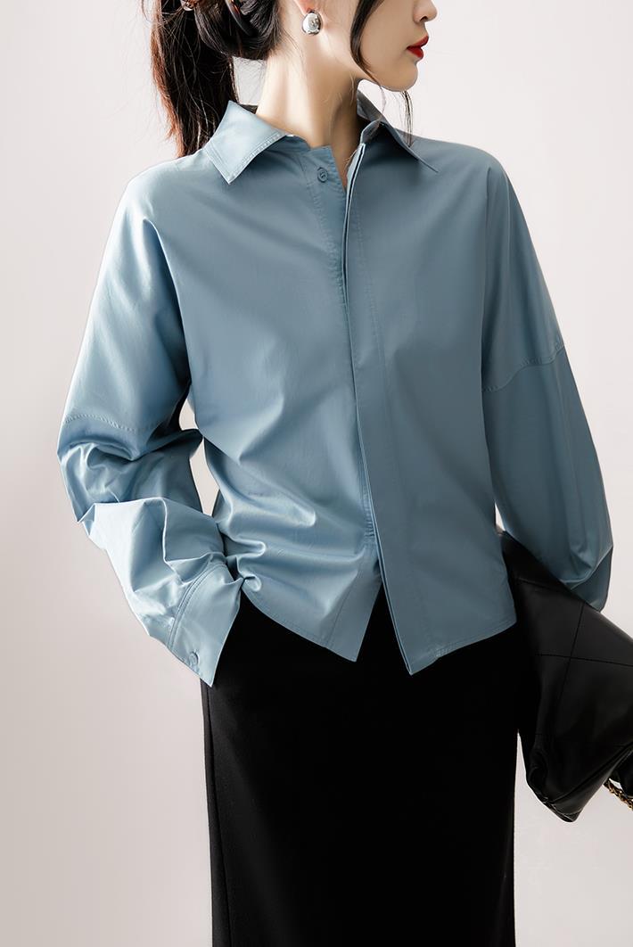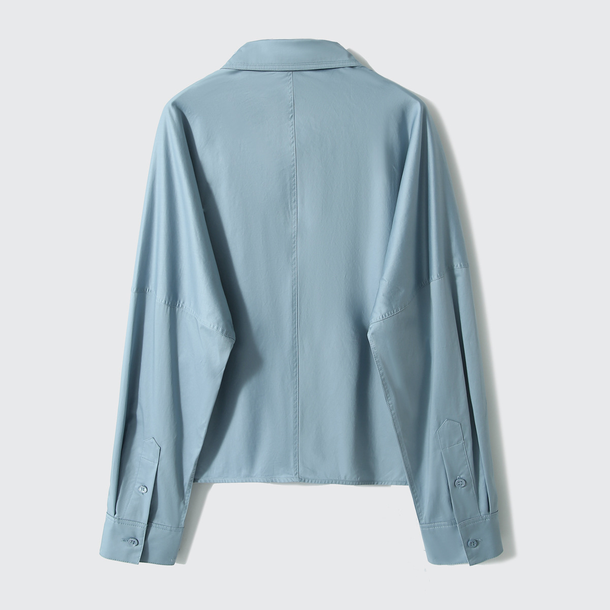 CYC660261AG 새틴 말 면화 Supima 느슨한 허리 짧은 실루엣 긴 소매 캐주얼 셔츠스토어 가기