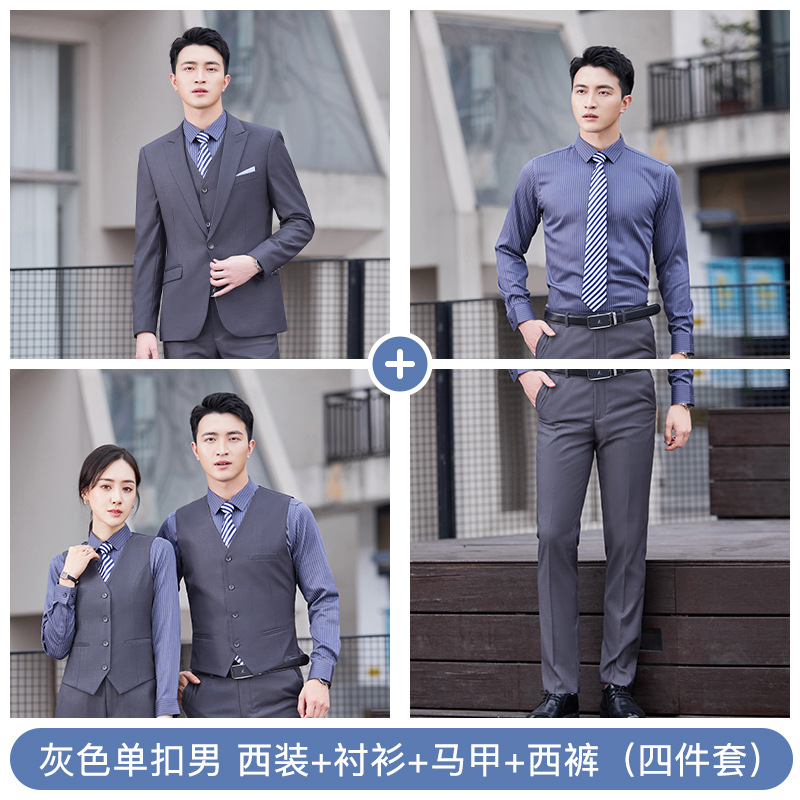 회색 세트 세트 남성과 여성 고급 전문 수식 공무원 면접 기질 작업복 조끼 세트 작업복스토어 가기