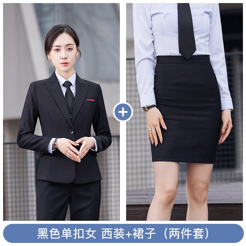 • 블랙 싱글 버튼 여성 세트 + 스커트