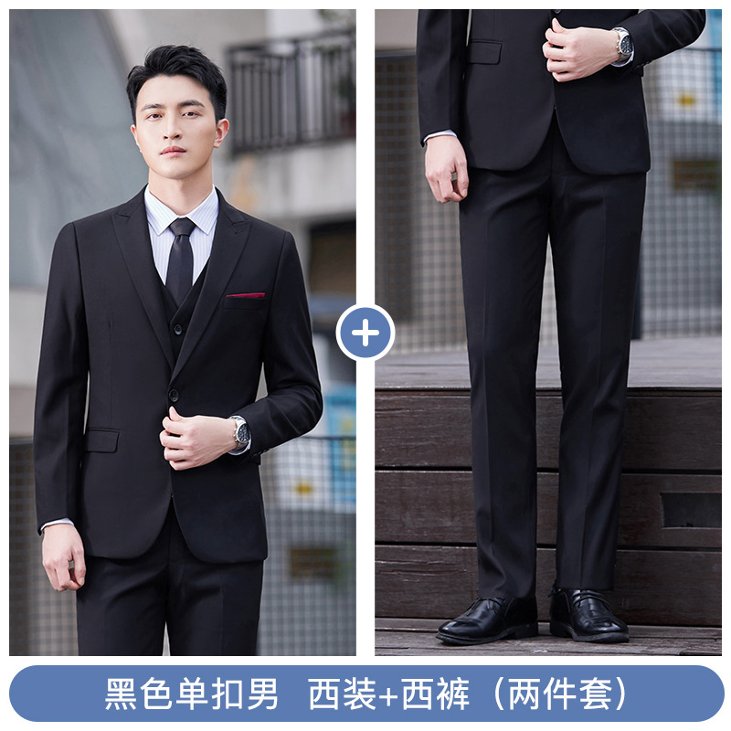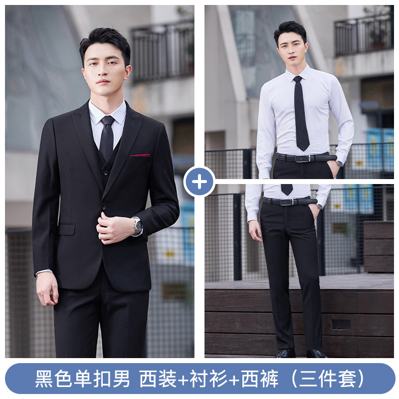 • 블랙 싱글 버튼 남성 세트 + 흰색 긴팔 셔츠 + 바지