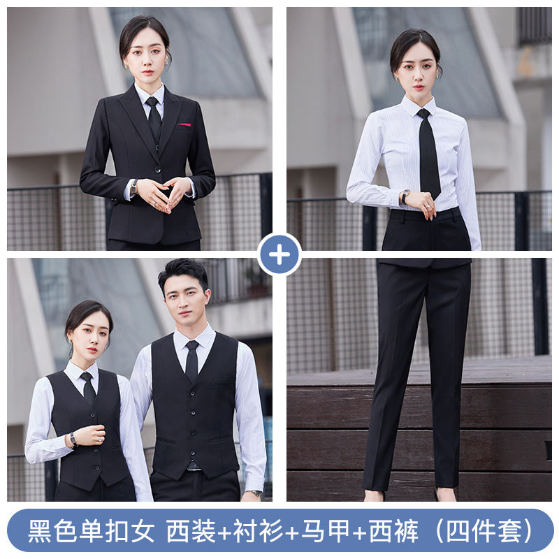 • 블랙 싱글 버튼 여성용 세트 + 흰색 긴팔 셔츠 + 양복 조끼 + 바지