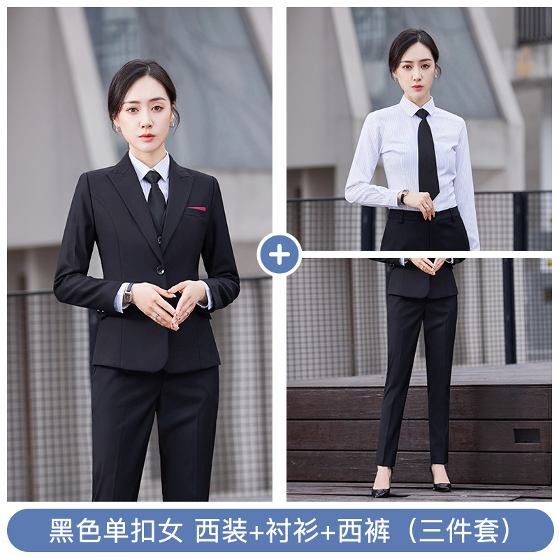 • 블랙 싱글 버튼 여성용 세트 + 흰색 긴팔 셔츠 + 바지