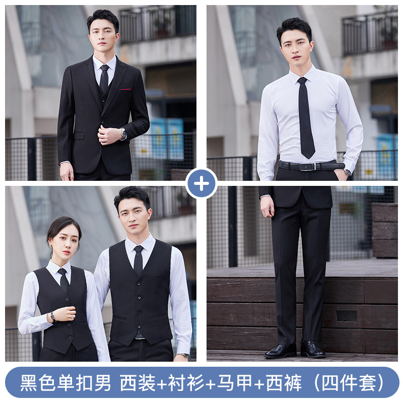 • 블랙 싱글 버튼 남성 세트 + 흰색 긴팔 셔츠 + 양복 조끼 + 바지