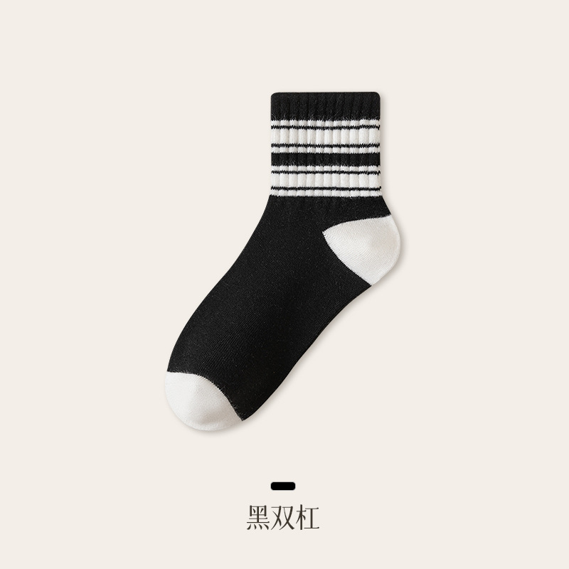 주지 양말 봄 여름 여성용 순면 흑백 줄무늬 중목 양말 학생 여성용 통기성 땀 흡수 방취 스포츠 양말