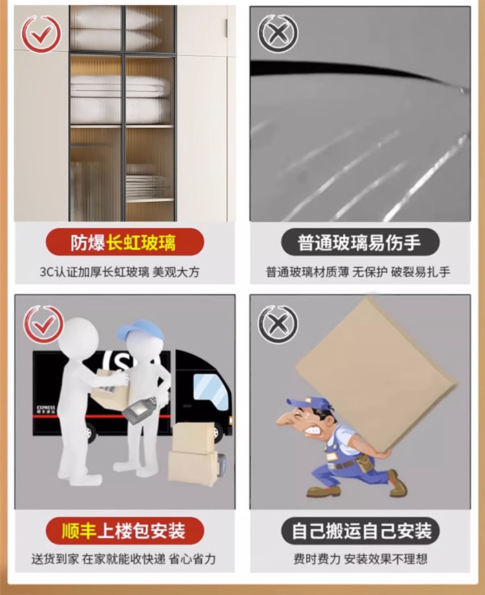 • [180*60*200] 유리 믹스 메인 캐비닛/5 문 (순수한 단단한 나무)