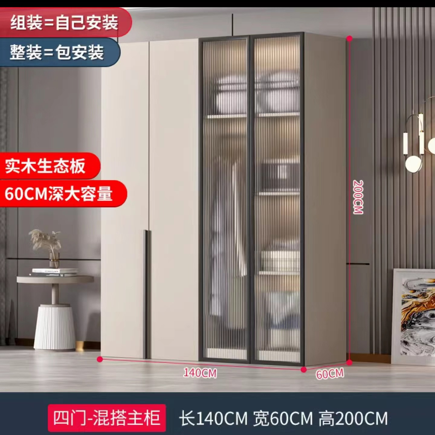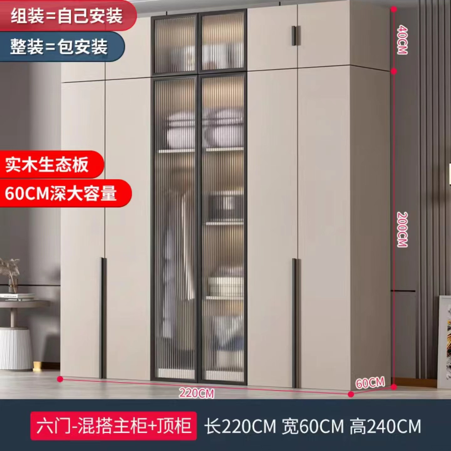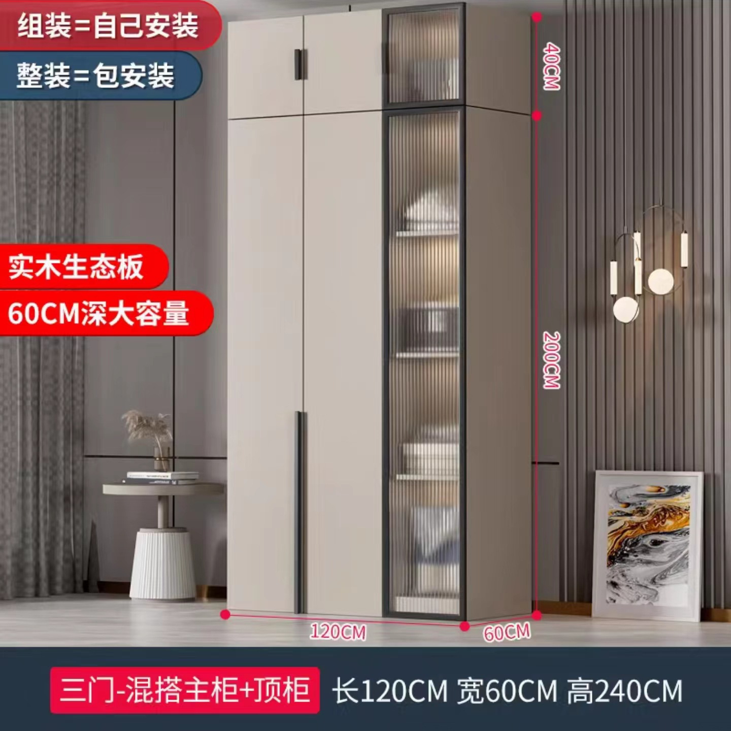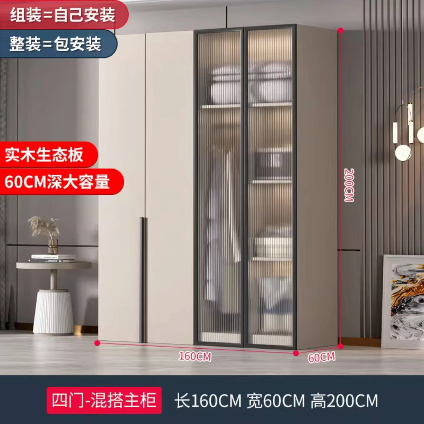 단단한 나무 옷장 가정용 침실 간단한 임대 주택 공장 직접 판매 경제적 인 유리 캐비닛 보관 옷장스토어 가기