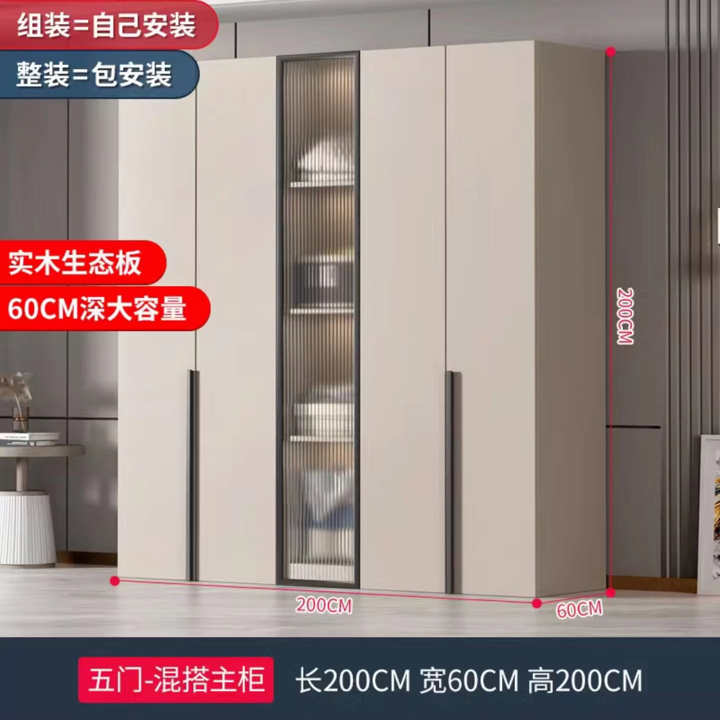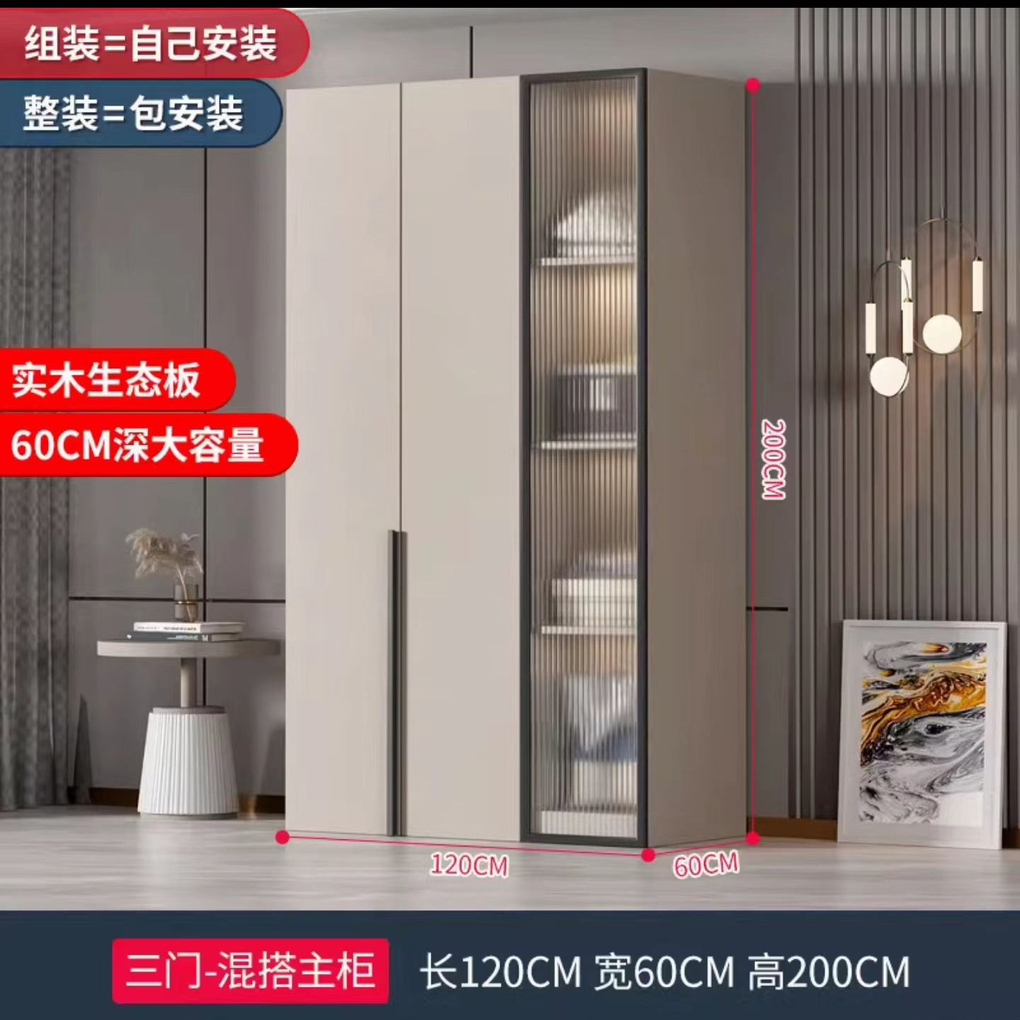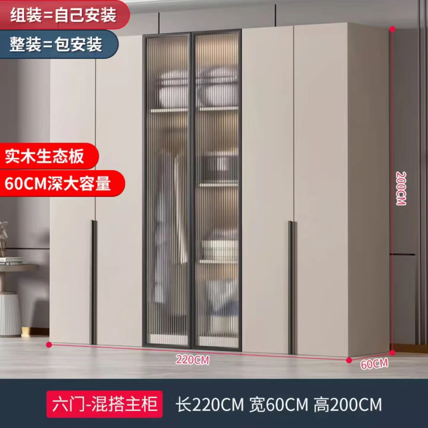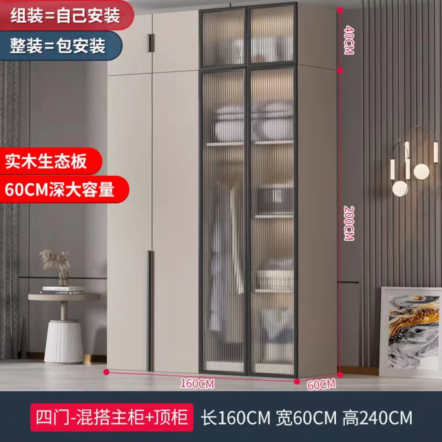 단단한 나무 옷장 가정용 침실 간단한 임대 주택 공장 직접 판매 경제적 인 유리 캐비닛 보관 옷장스토어 가기