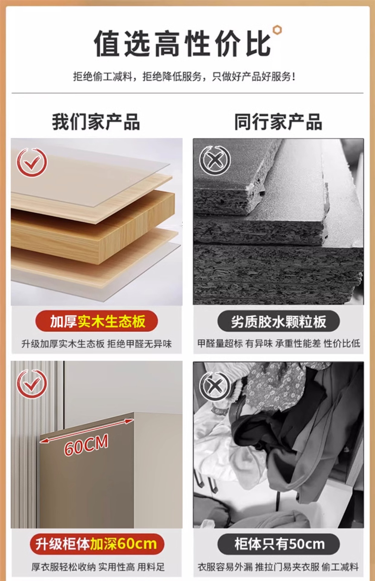 단단한 나무 옷장 가정용 침실 간단한 임대 주택 공장 직접 판매 경제적 인 유리 캐비닛 보관 옷장