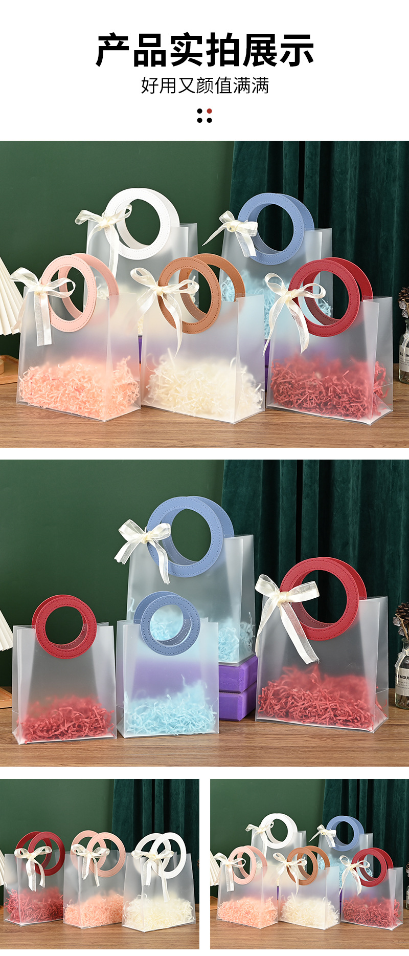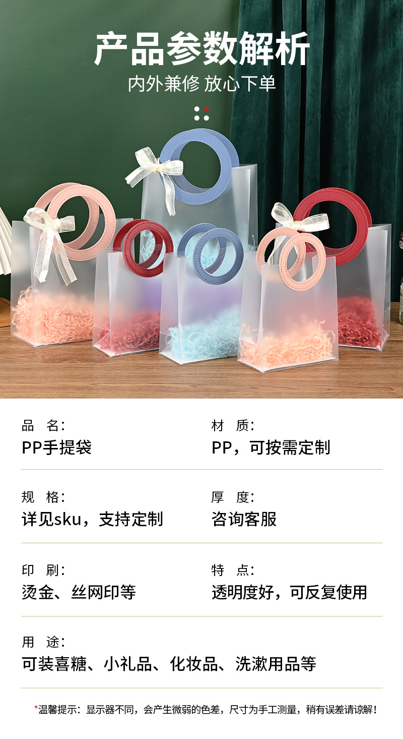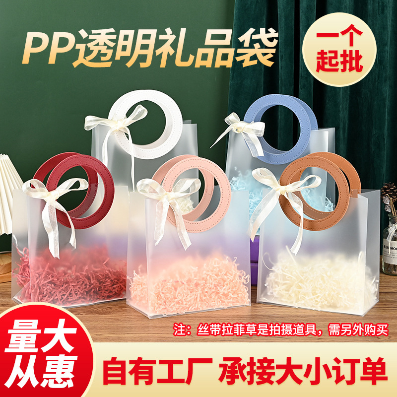 Pp 매트 선물 가방 플라스틱 투명 크리스마스 핸드백 생일 선물 포장 가방 웨딩 선물 가방