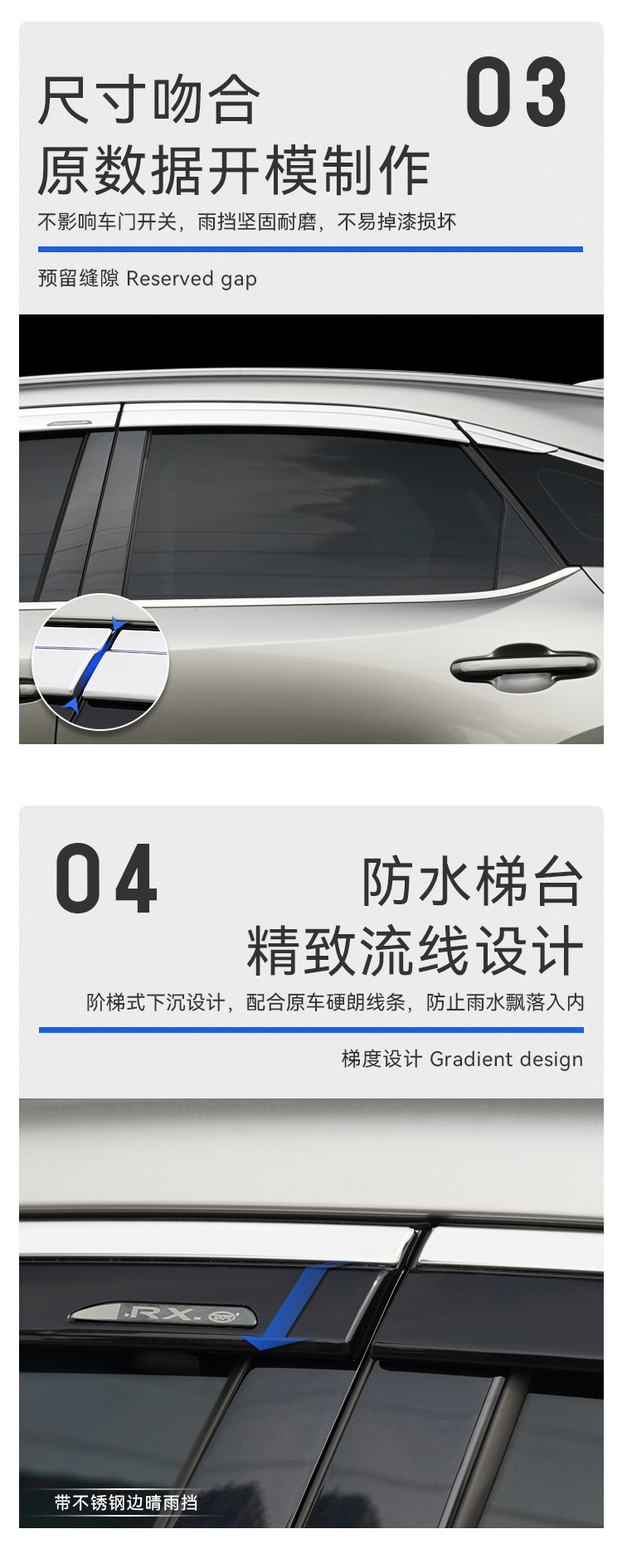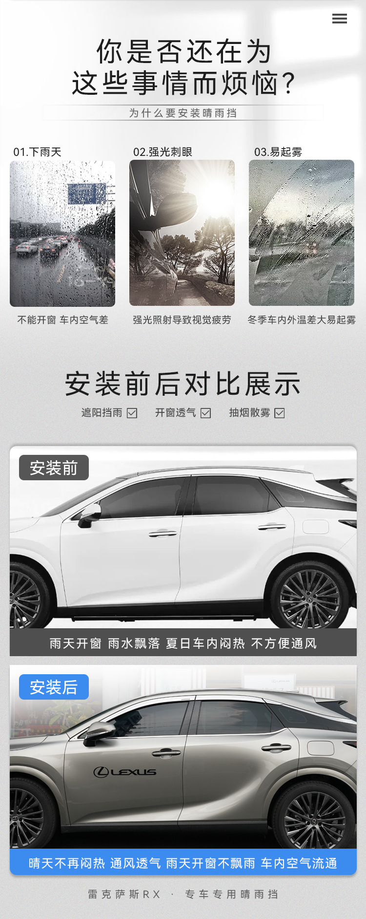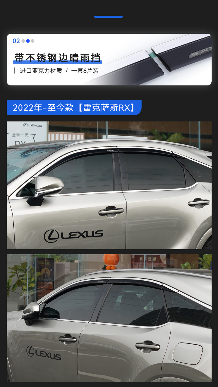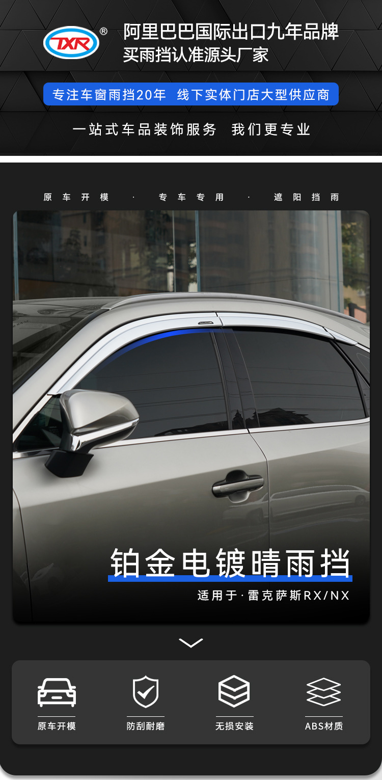 TXR는 렉서스 RX 차량용 레인 쉴드 개조, 렉서스 NX 차량용 윈도우 레인 쉴드, 외부 액세서리에 적합합니다.