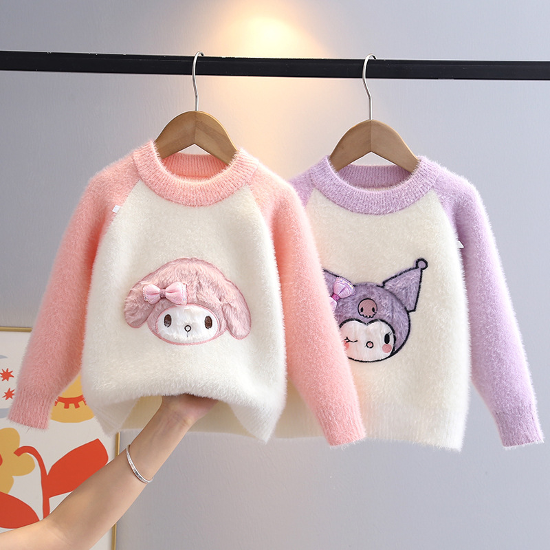 아기 소녀 밍크 양털 스웨터 가을과 겨울 귀여운 어린이 두꺼운 기본 셔츠 2 3 4 ~ 5 6 세 소녀의 옷