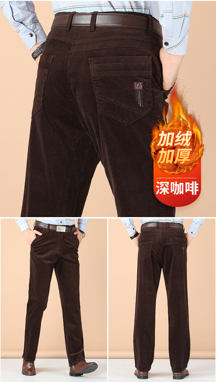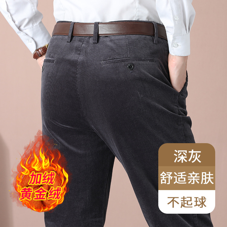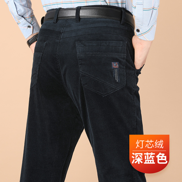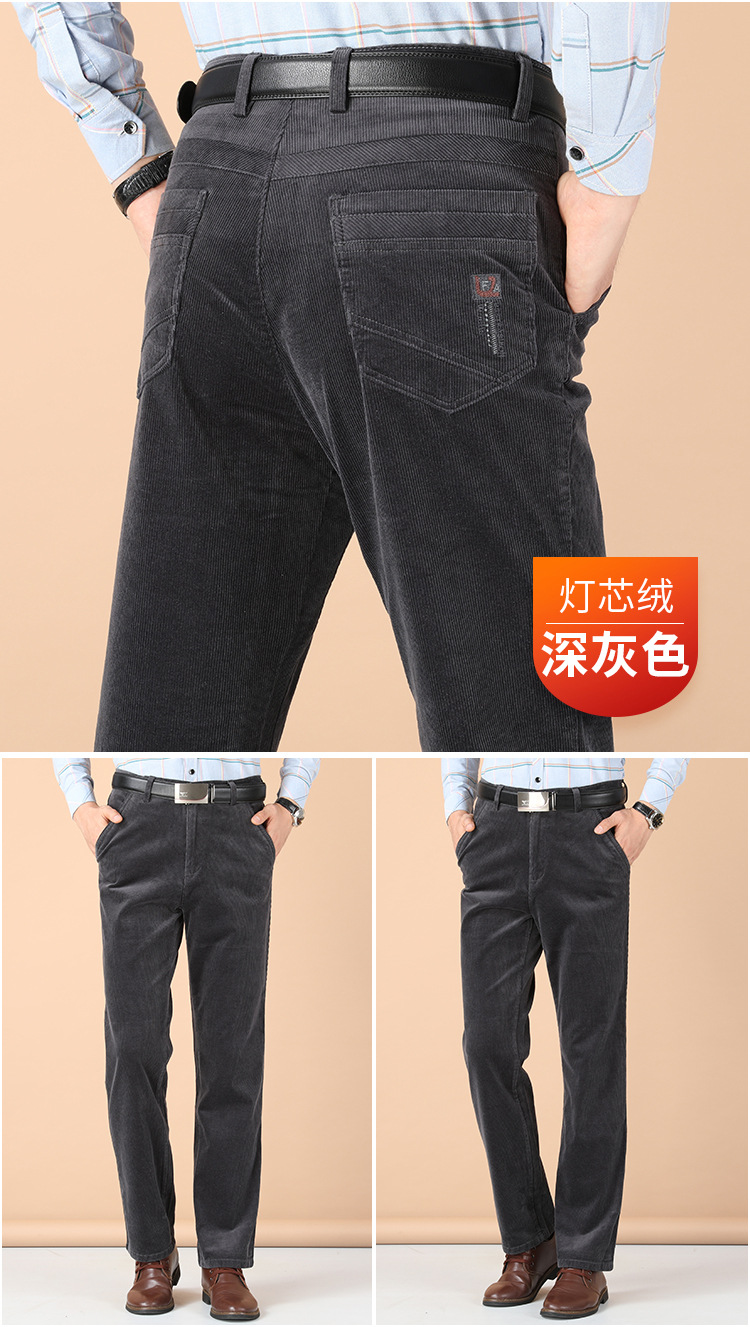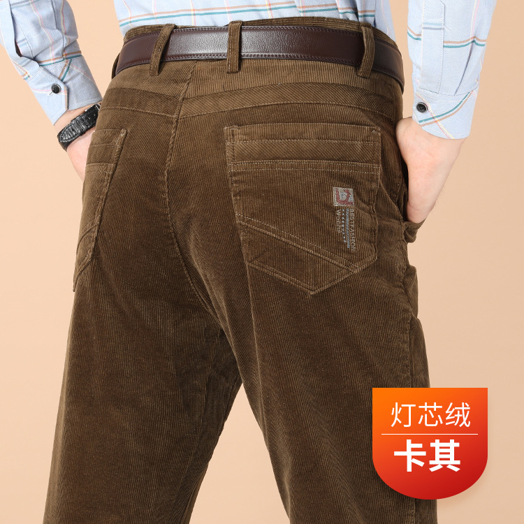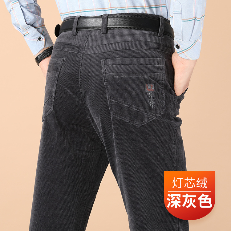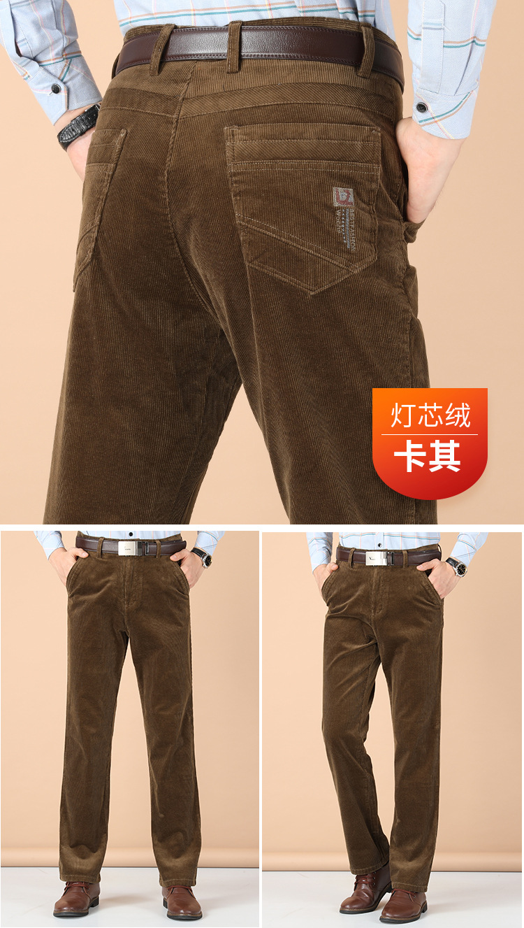 2025년 가을 겨울 신상 남성용 코듀로이 팬츠, 기모 및 두꺼운 코듀로이 소재, 중장년층을 위한 루즈핏 스트레이트 엘라스틱 팬츠스토어 가기