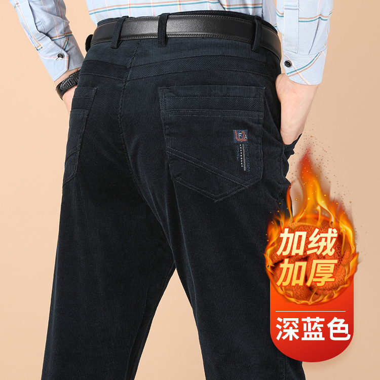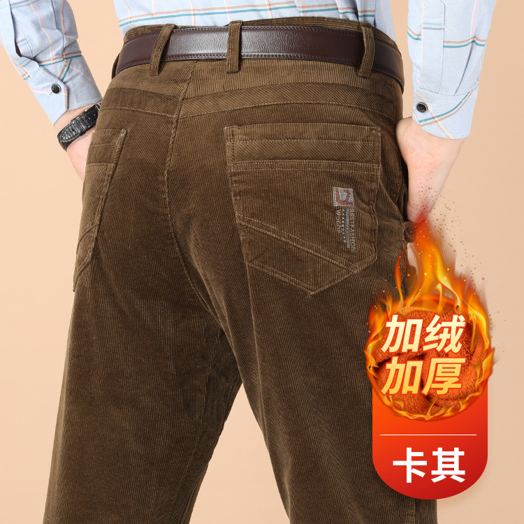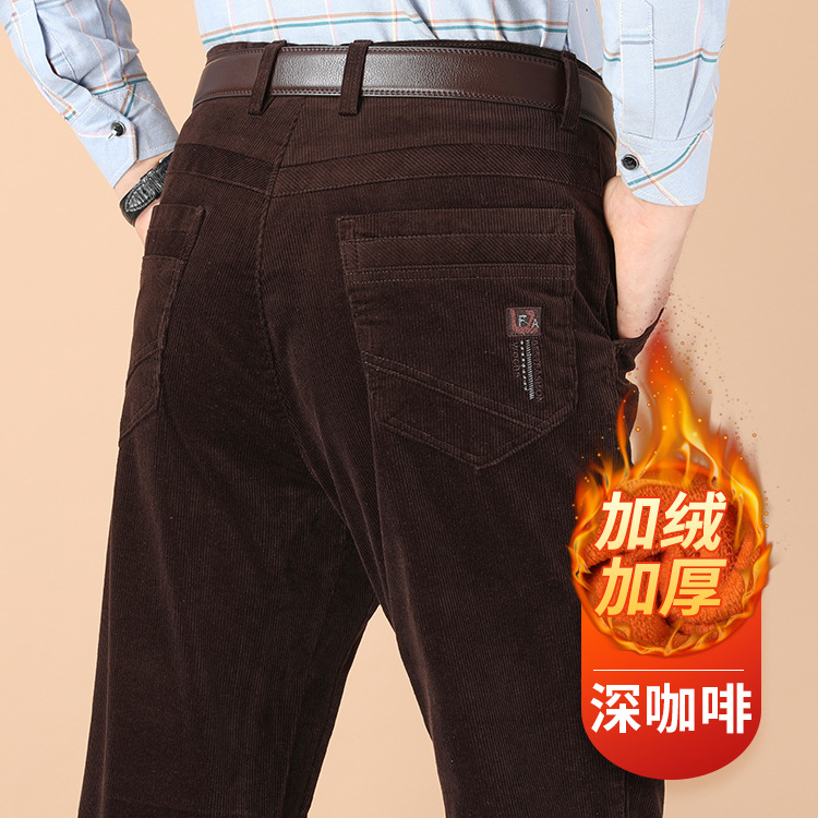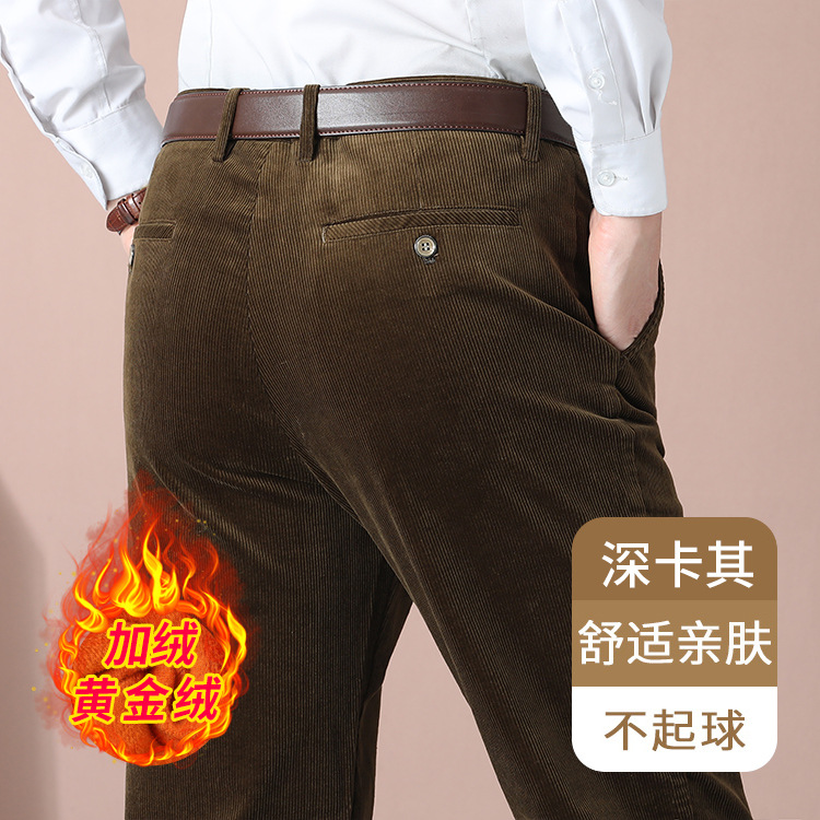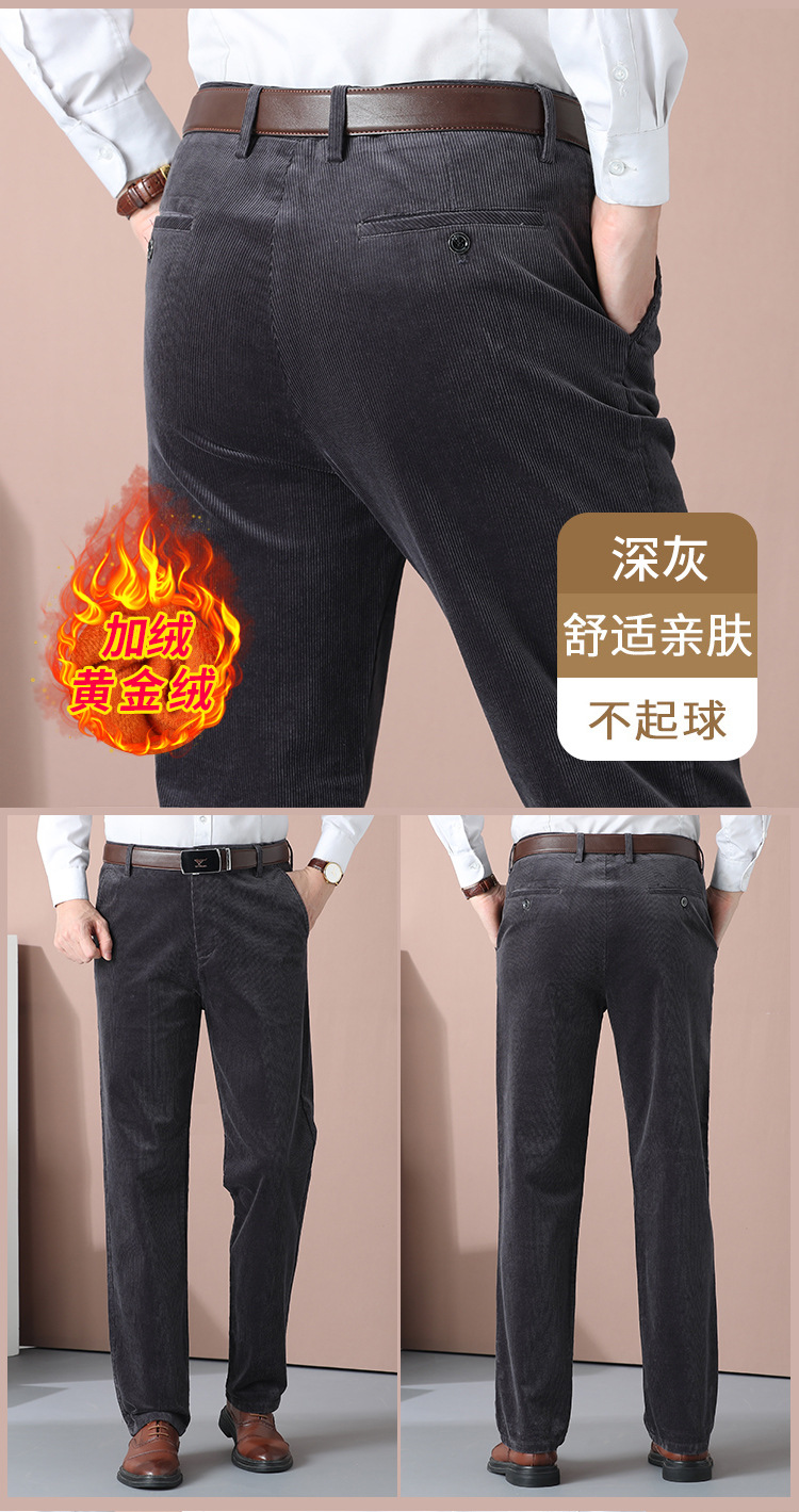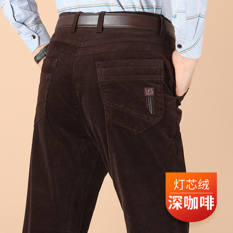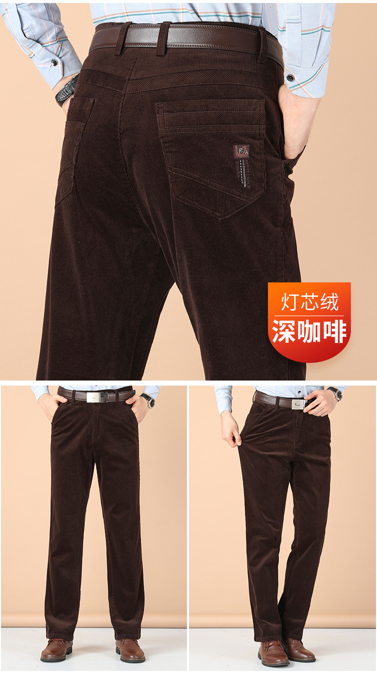2025년 가을 겨울 신상 남성용 코듀로이 팬츠, 기모 및 두꺼운 코듀로이 소재, 중장년층을 위한 루즈핏 스트레이트 엘라스틱 팬츠스토어 가기