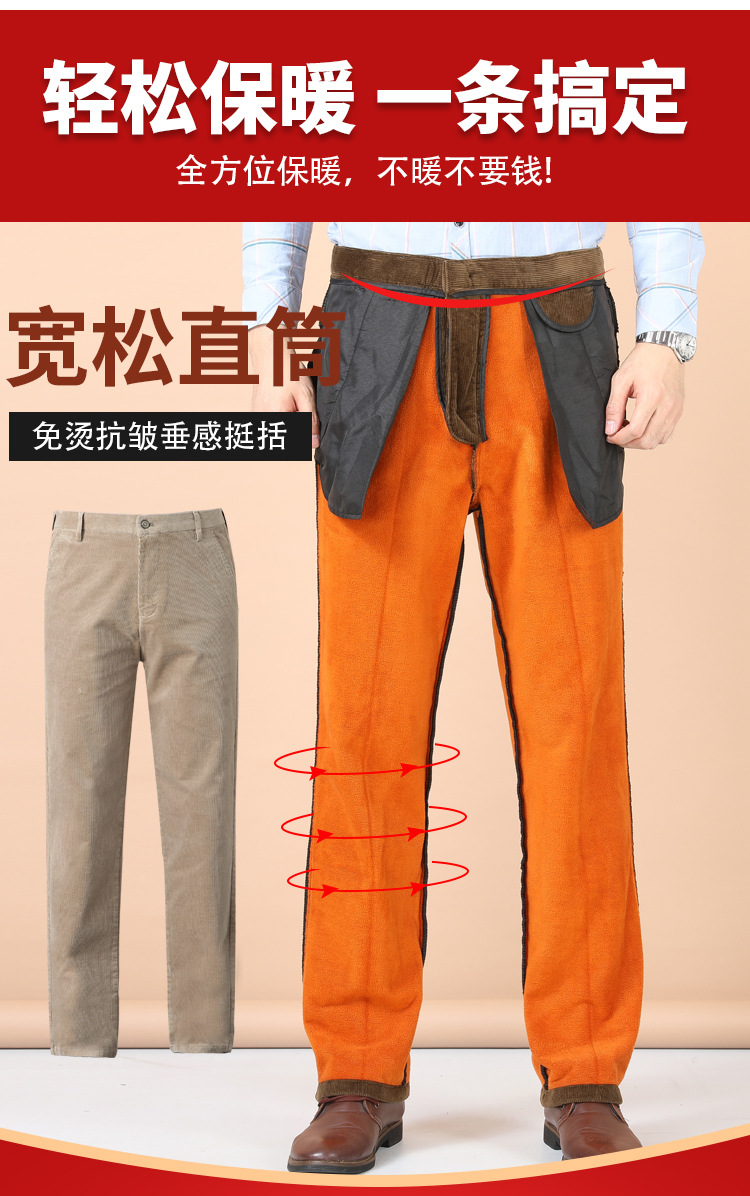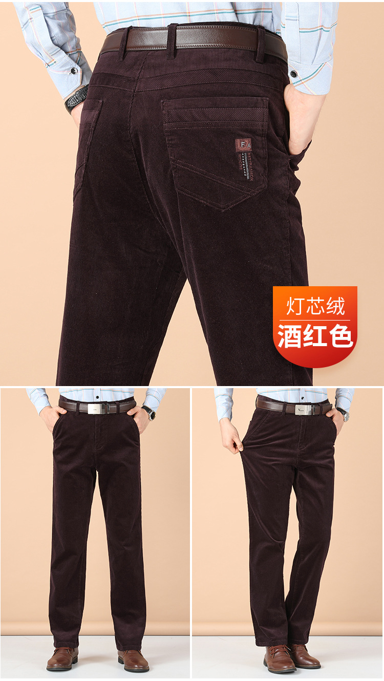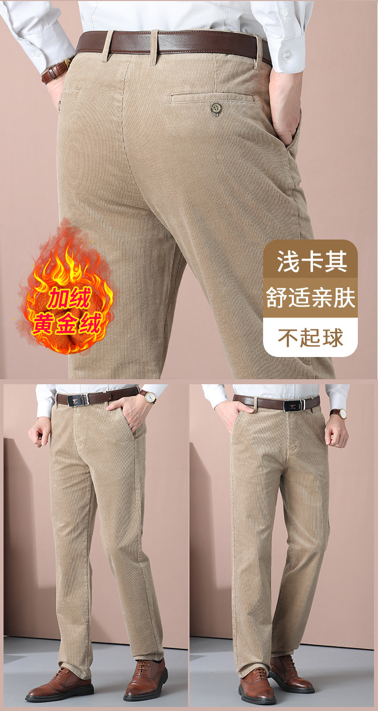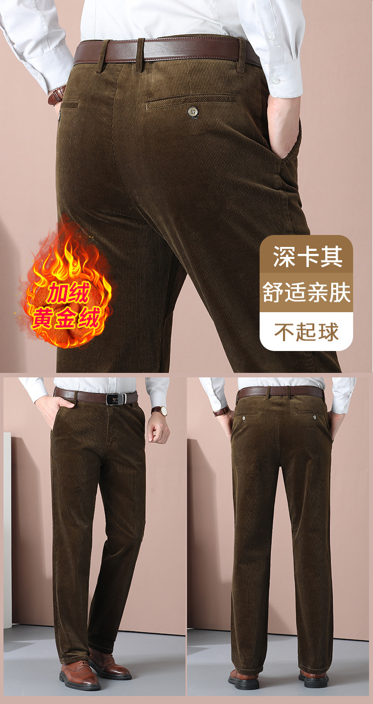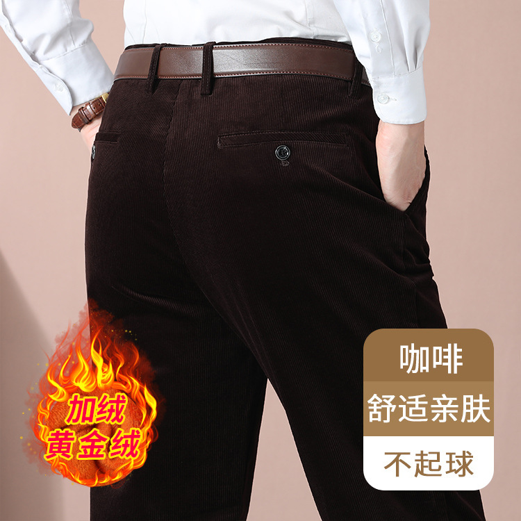 2025년 가을 겨울 신상 남성용 코듀로이 팬츠, 기모 및 두꺼운 코듀로이 소재, 중장년층을 위한 루즈핏 스트레이트 엘라스틱 팬츠스토어 가기