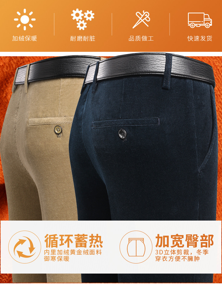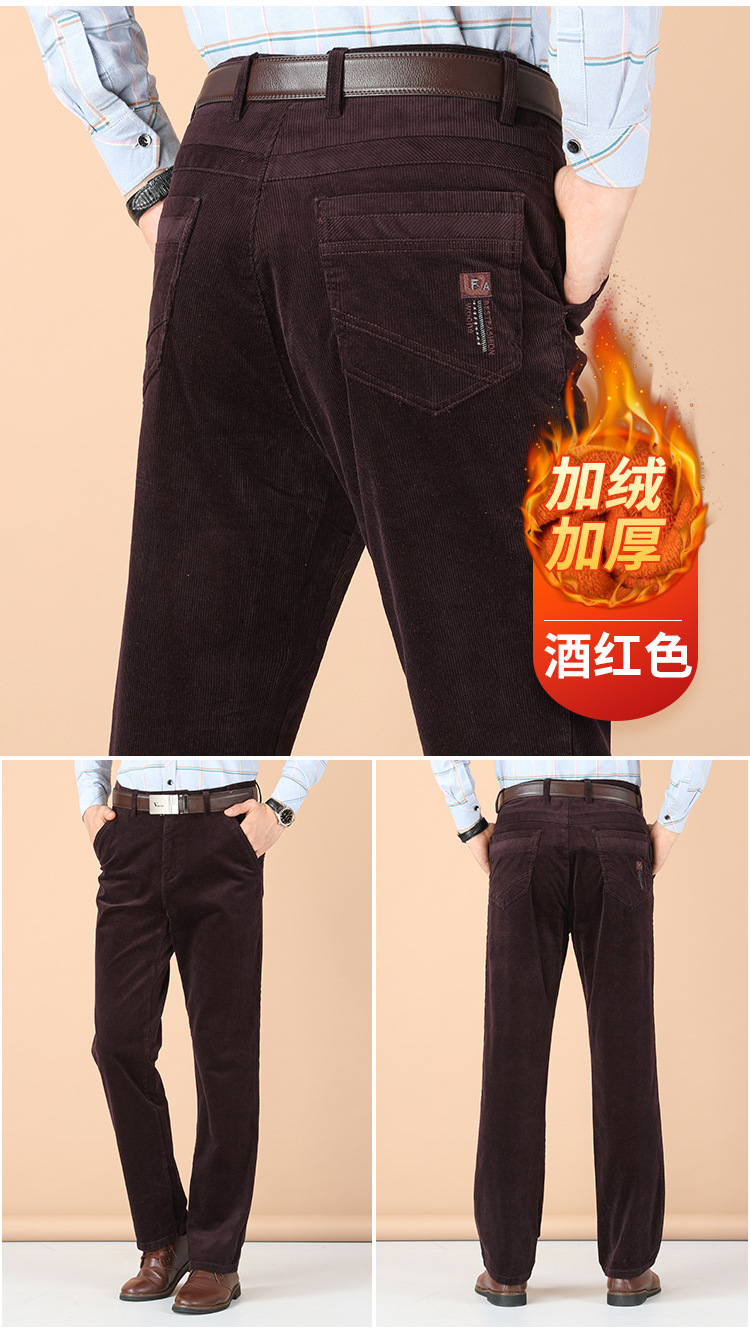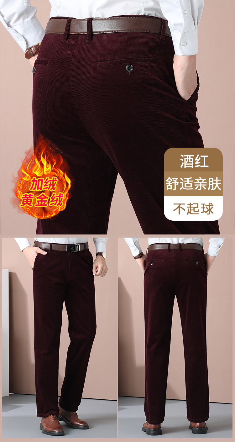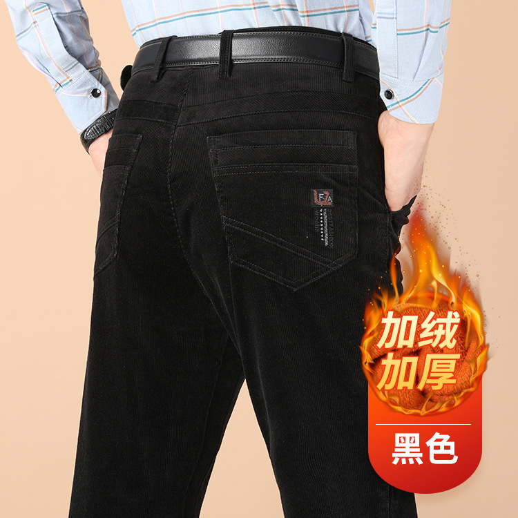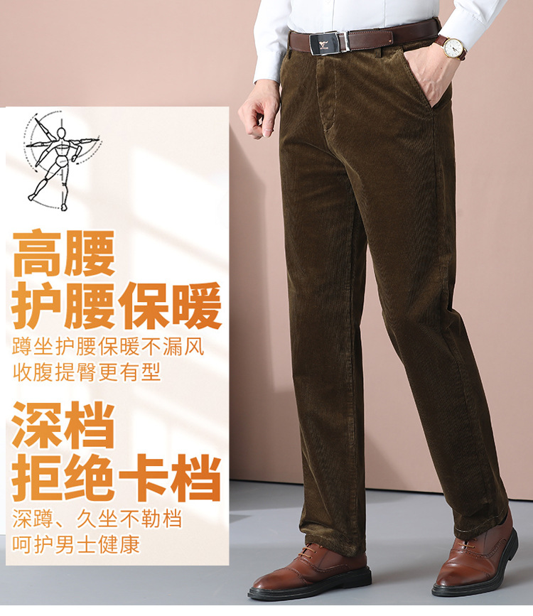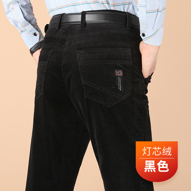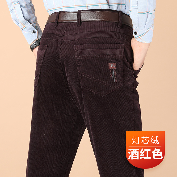 2025년 가을 겨울 신상 남성용 코듀로이 팬츠, 기모 및 두꺼운 코듀로이 소재, 중장년층을 위한 루즈핏 스트레이트 엘라스틱 팬츠스토어 가기