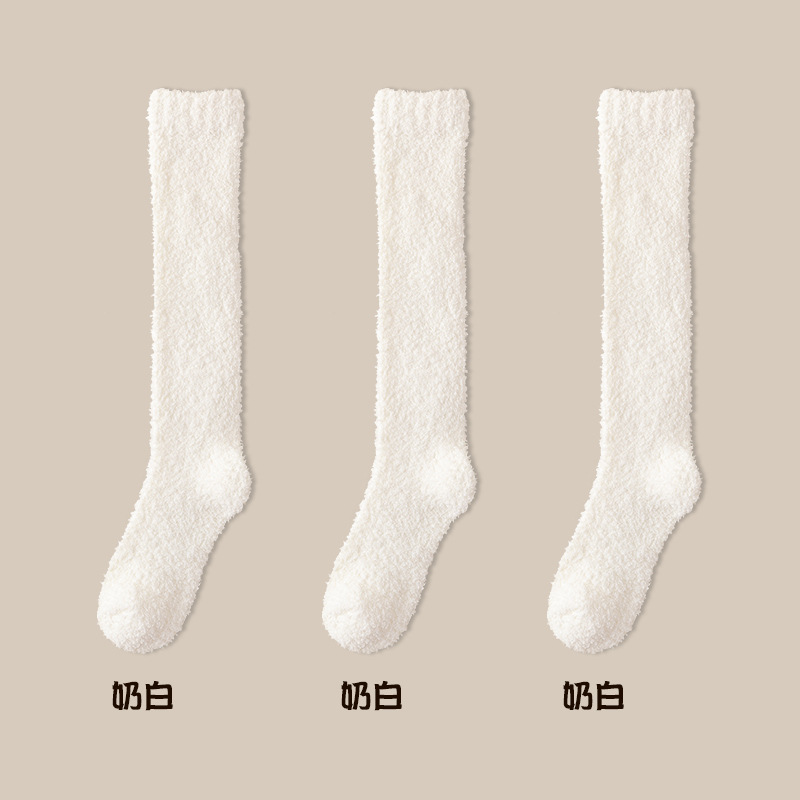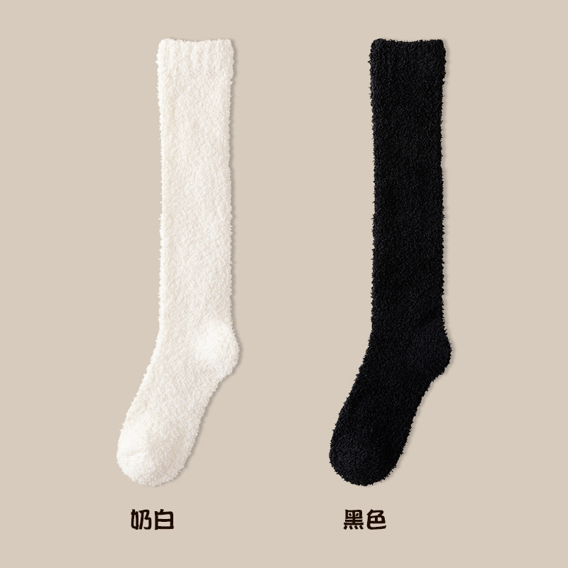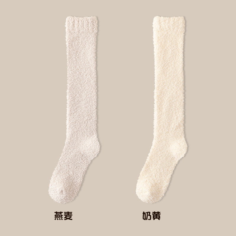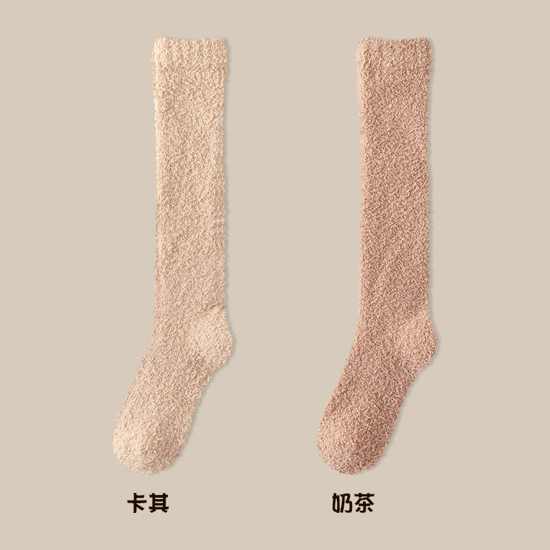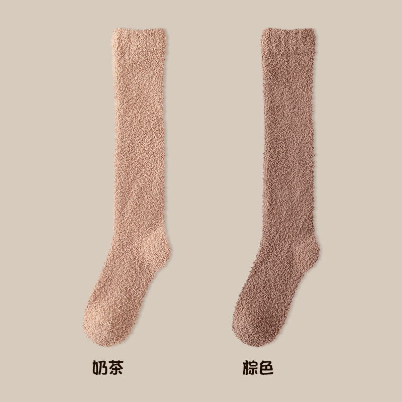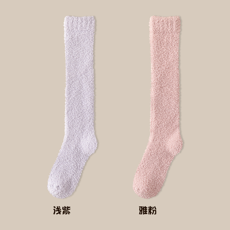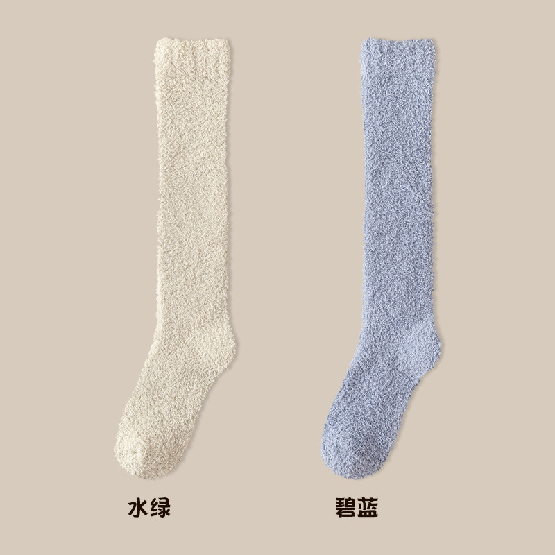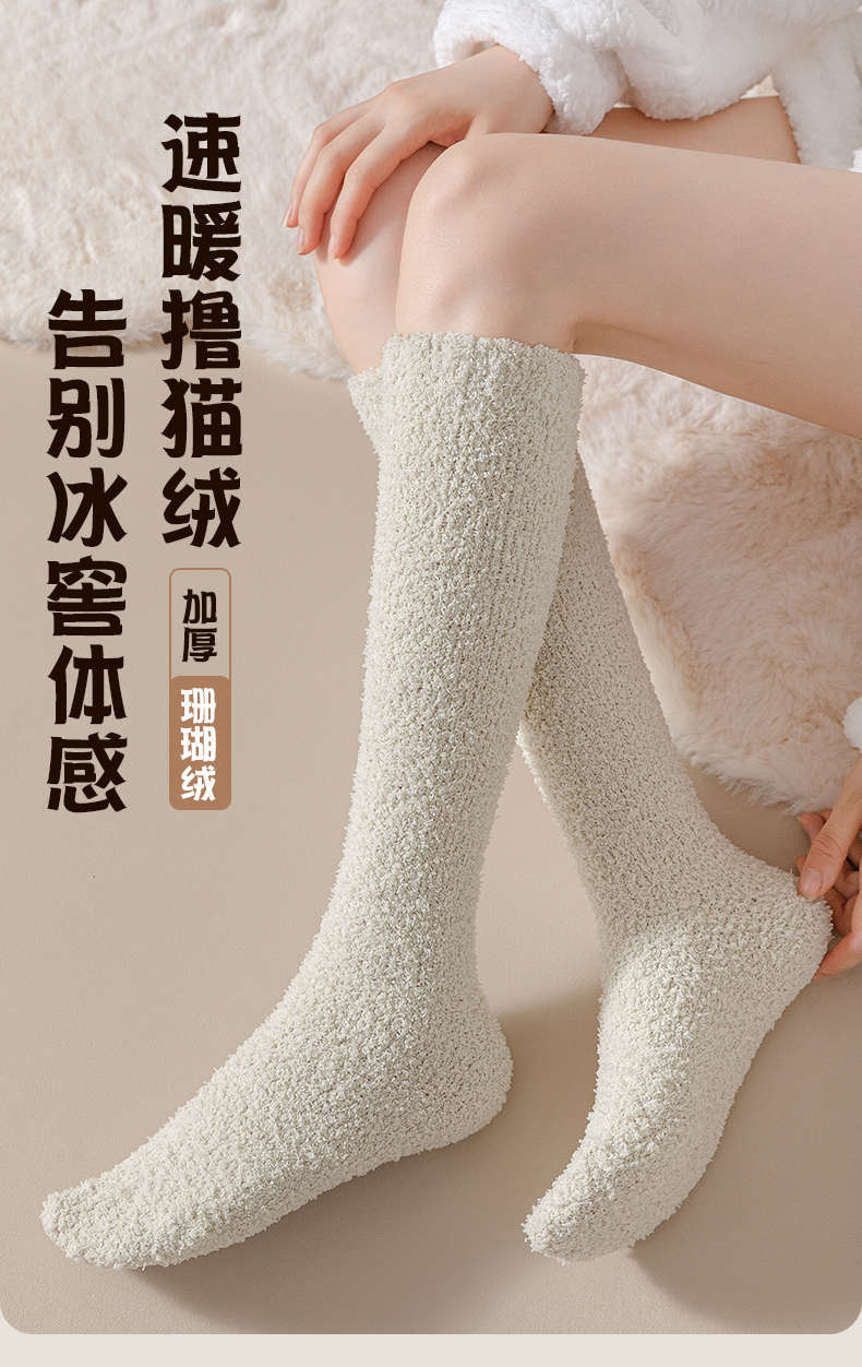 긴 산호 양털 양말 여자의 가을과 겨울 두꺼운 따뜻한 송아지 양말 기모 수면 플랫 높은 양털 양말