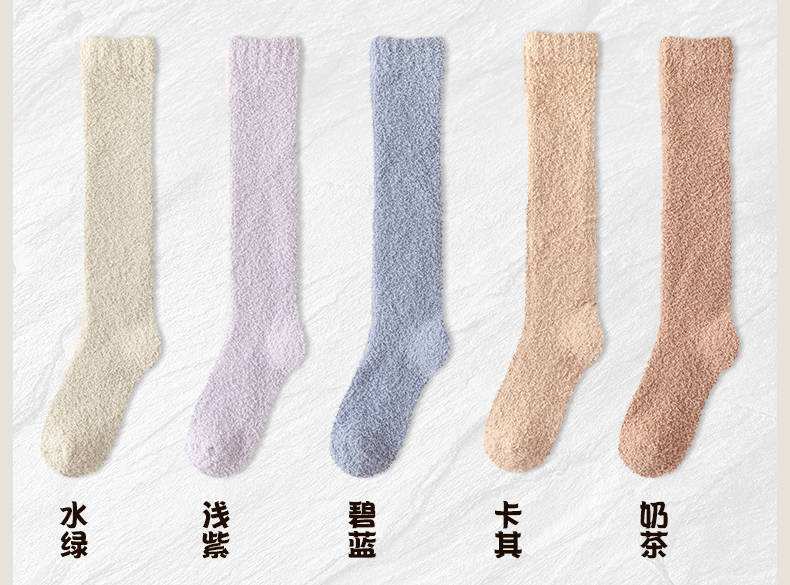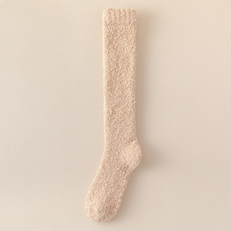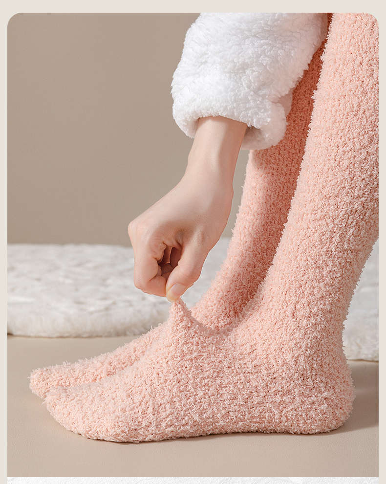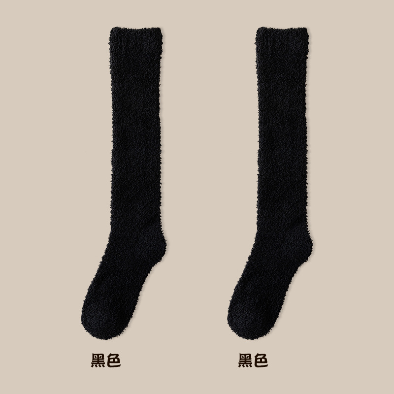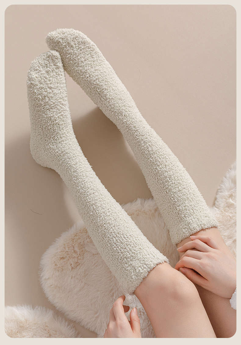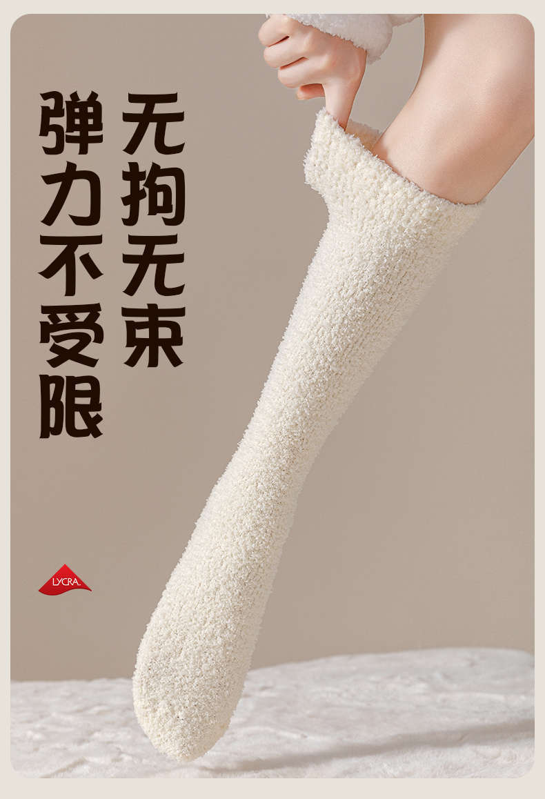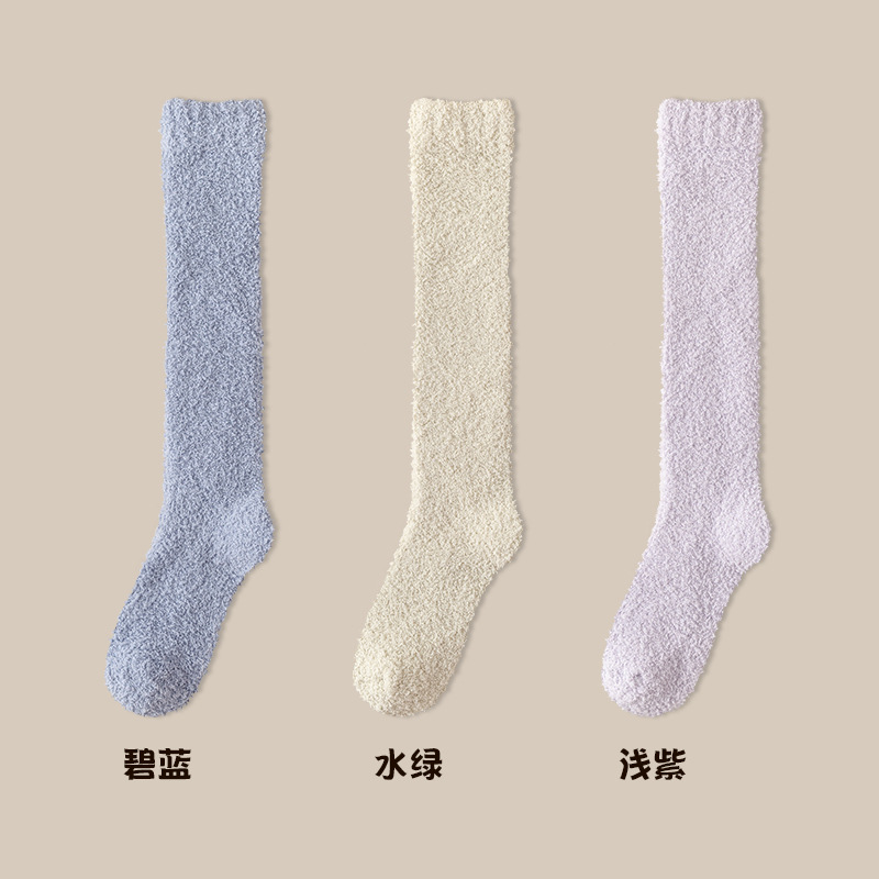 긴 산호 양털 양말 여자의 가을과 겨울 두꺼운 따뜻한 송아지 양말 기모 수면 플랫 높은 양털 양말