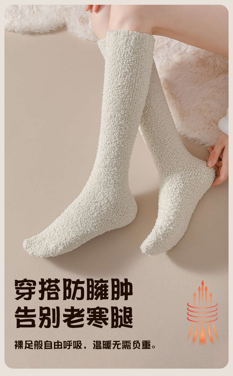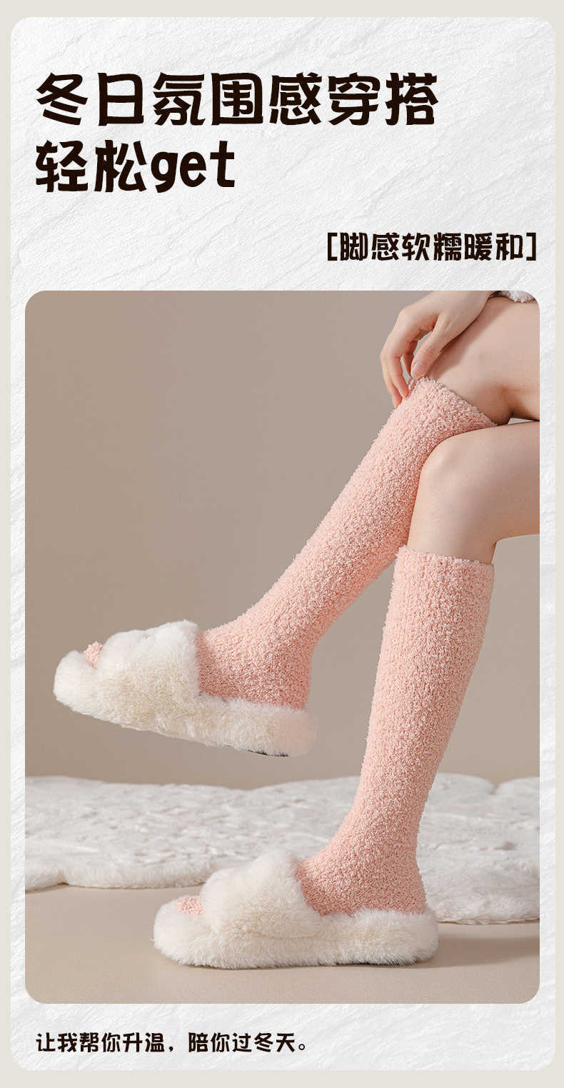 긴 산호 양털 양말 여자의 가을과 겨울 두꺼운 따뜻한 송아지 양말 기모 수면 플랫 높은 양털 양말스토어 가기