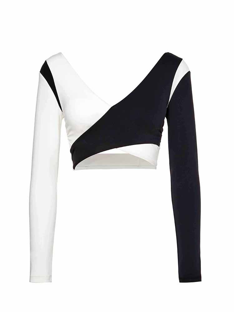 야외 레저 요가 착용 긴팔 흑백 스플 라이스 슬림 통기성 운동복 러닝 피트니스 v 넥 탑 타이트스토어 가기