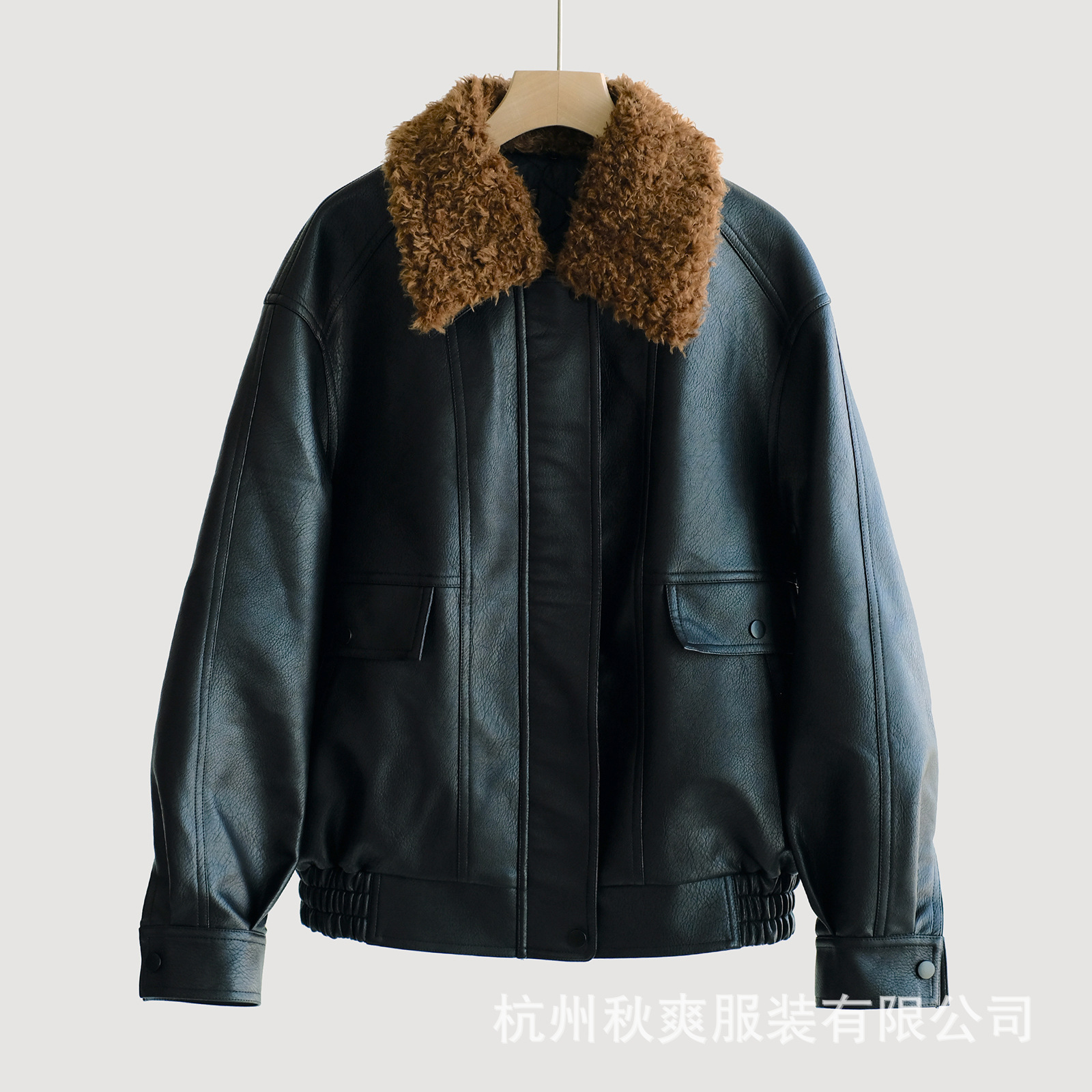 빈티지 PU 가죽 자켓 아메리칸 스타일 퀼트 두꺼운 따뜻한 짧은 스타일 세트 재킷 면 패딩 코트 여성의 최고 가을과 겨울스토어 가기