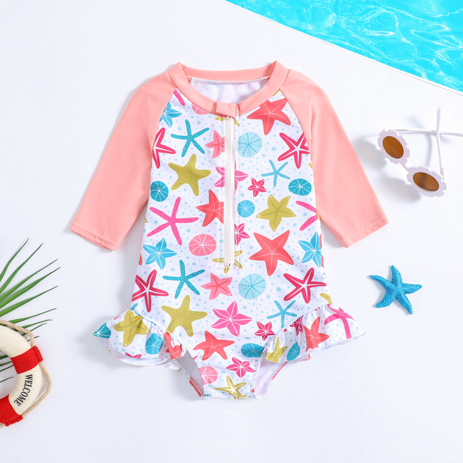 크로스 보더 어린이 수영복 여자 '원피스 수영 트렁크 세트 여자 수영 선 스크린스토어 가기